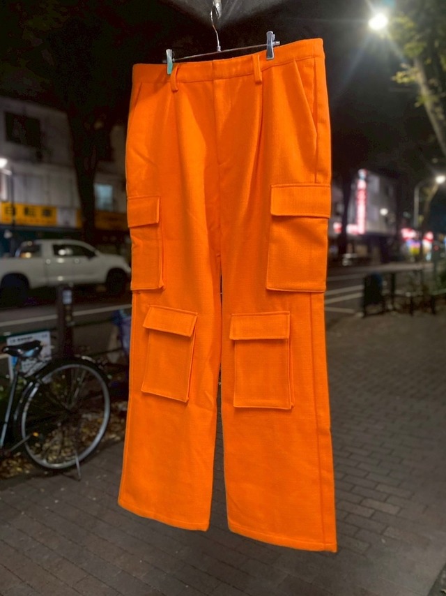 ※祐天寺"電波赤丸"に在庫ございます バッキバキなオレンジカラー。 大容量なポケットデザインに加え、何故か裾にかけて広がるフレア仕様。 滅茶苦茶いいですね。 質感はウールのような肉厚さですが、洗濯も可能な合成繊維です。 色味が減りがちな冬にこそ、バチバチに色を足してみては。 W96cm 股上34cm 股下80cm ワタリ幅33cm 裾幅35cm