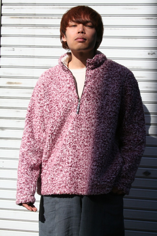 ※祐天寺"電波赤丸"に在庫ございます。 高密度の色彩。桜前線を感じさせるフリースジャケットです。 ベリーを思わせる深い色彩と、白の断片が複雑に混ざり合う。 驚異的なボリューム感に反して、柔らかくも「ポップコーン」のような起毛感が心地よいです。 ハーフジップという実用的な装置によって、首元の表情は刻一刻と変化し、周囲の空気と混ざり合います。是非。 Men's XLくらい 身幅64cm 着丈70cm 袖丈63cm 着用モデル168cm d0792