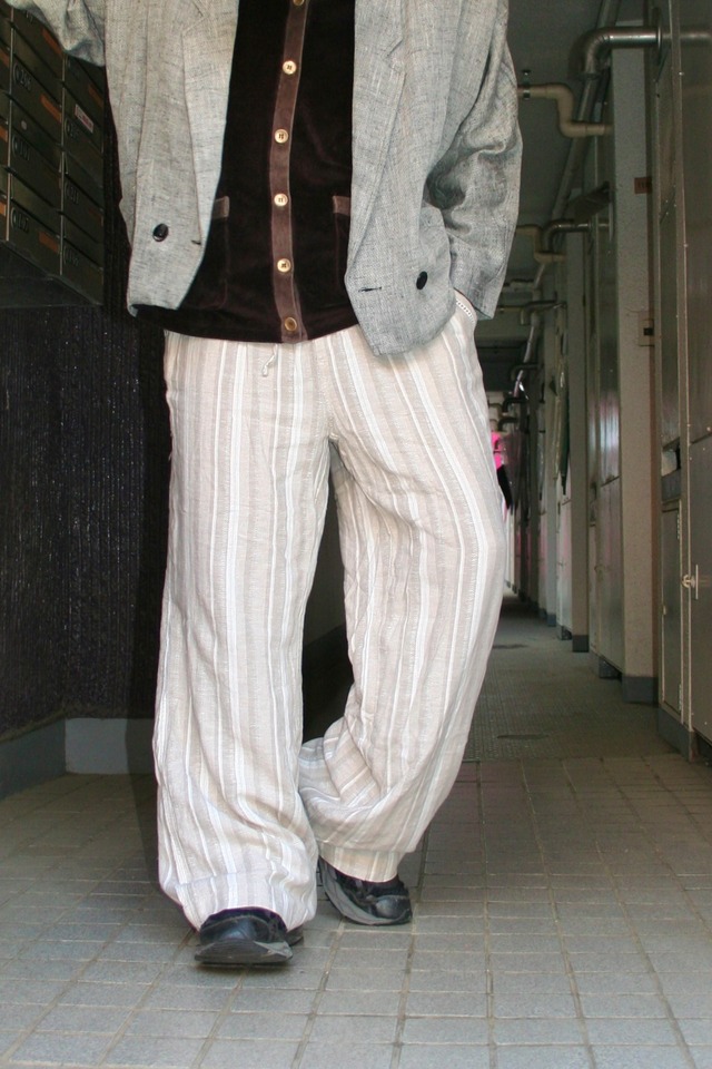 Linen×Rayon Striped Easy Pants