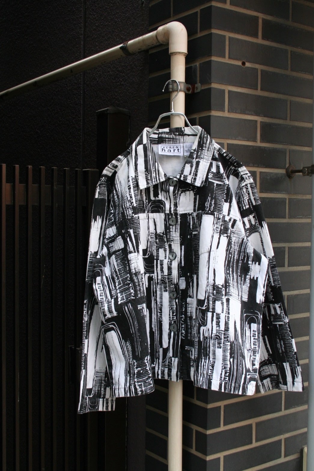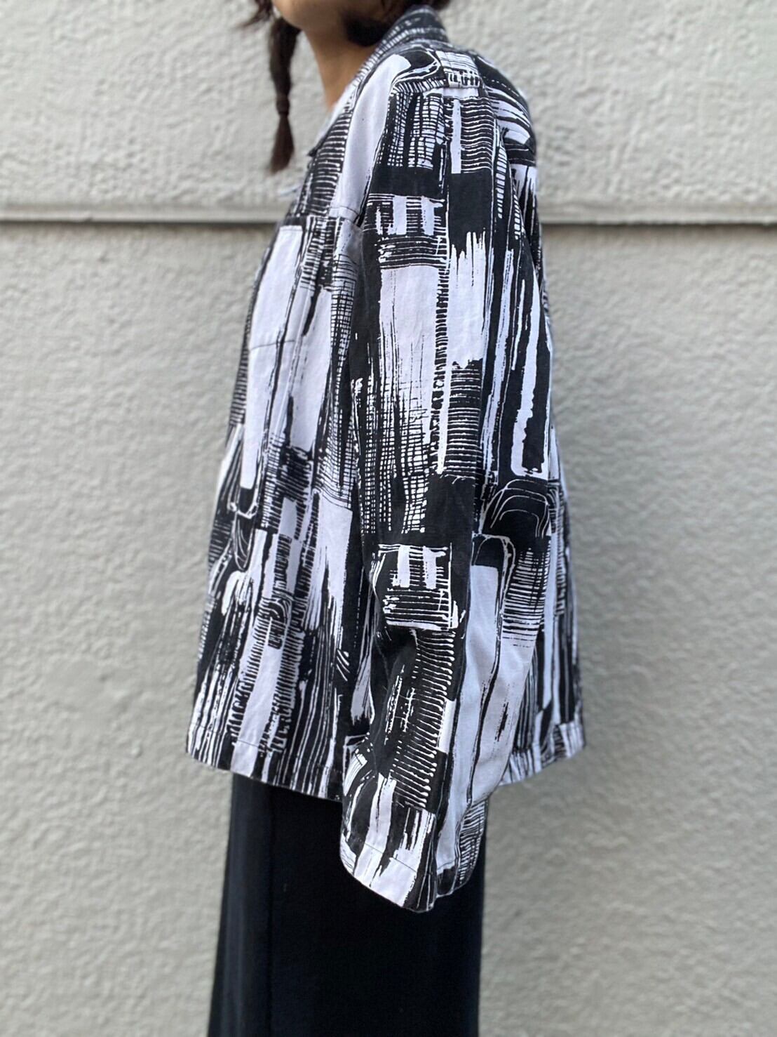 トラッカージャケットをベースに、目を惹く墨絵のようなデザイン。