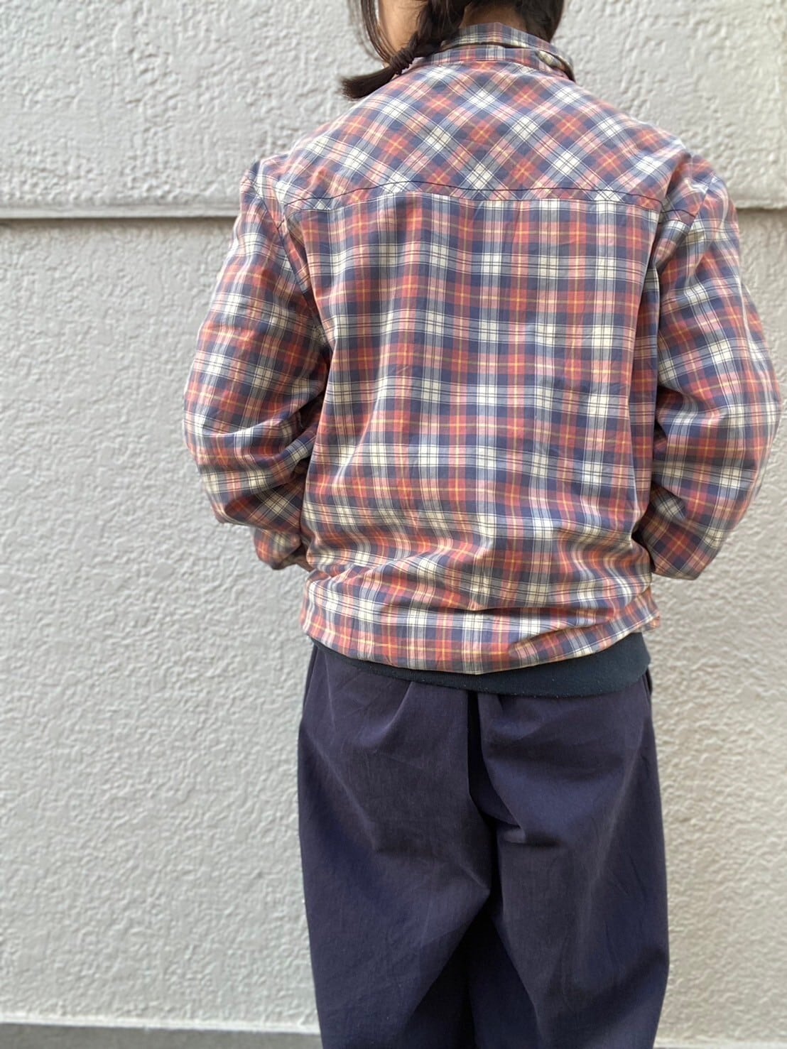 小判気味に配置された柔らかい風合いのチェックパターン。短丈すぎない絶妙なサイズが素晴らしい。