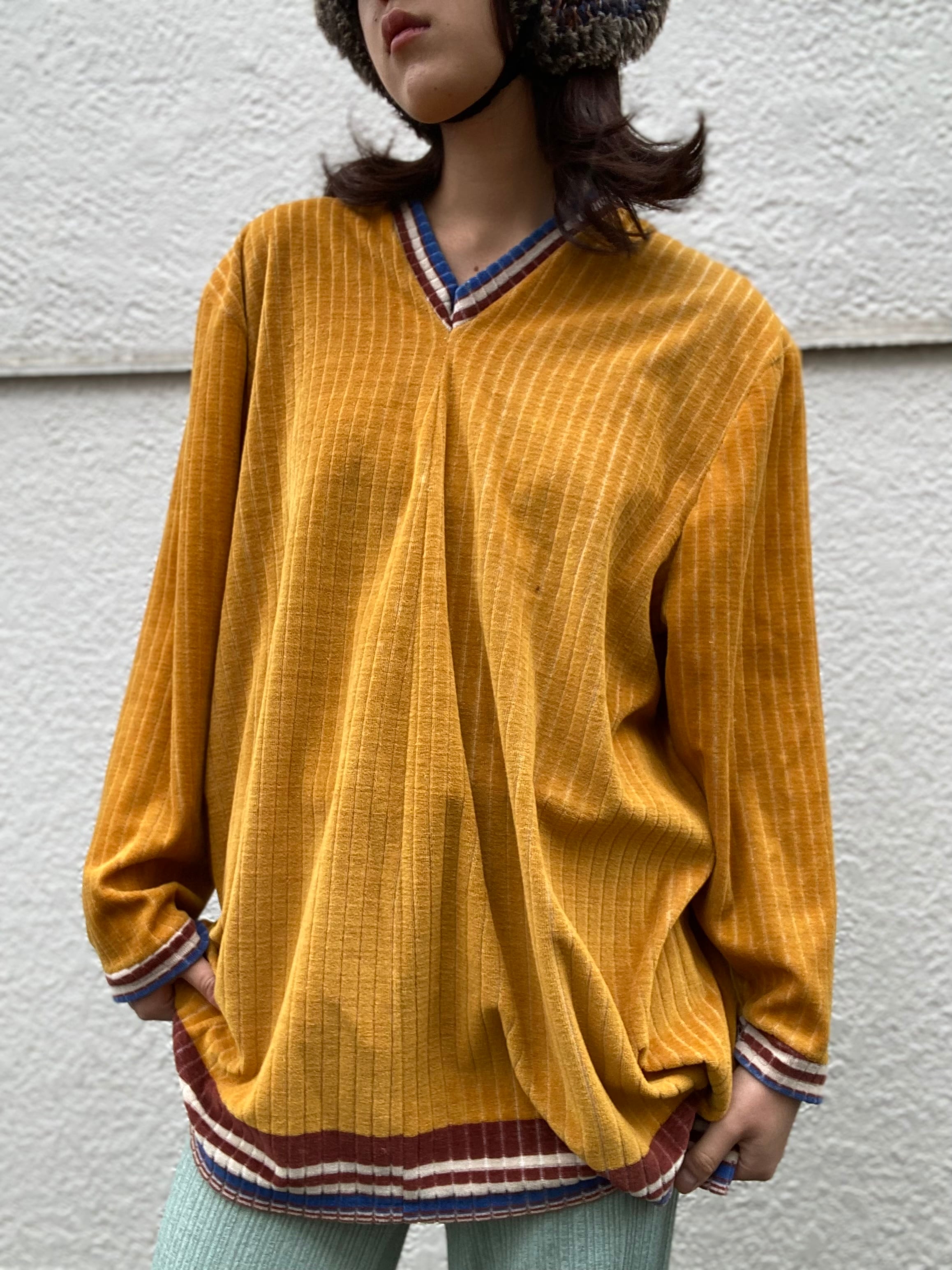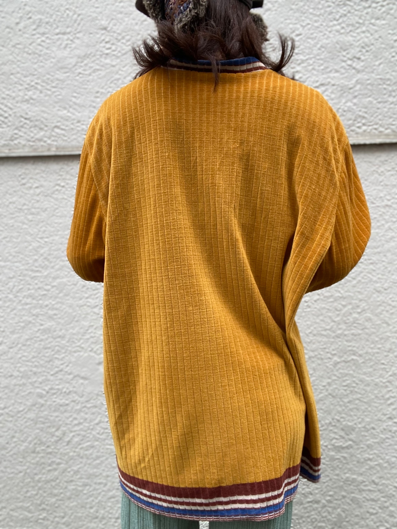 特別柔らかいベロアで光沢感が更に輝きを放っています。Vネックによる色気もプラスされカジュアルながらも優雅な逸品。