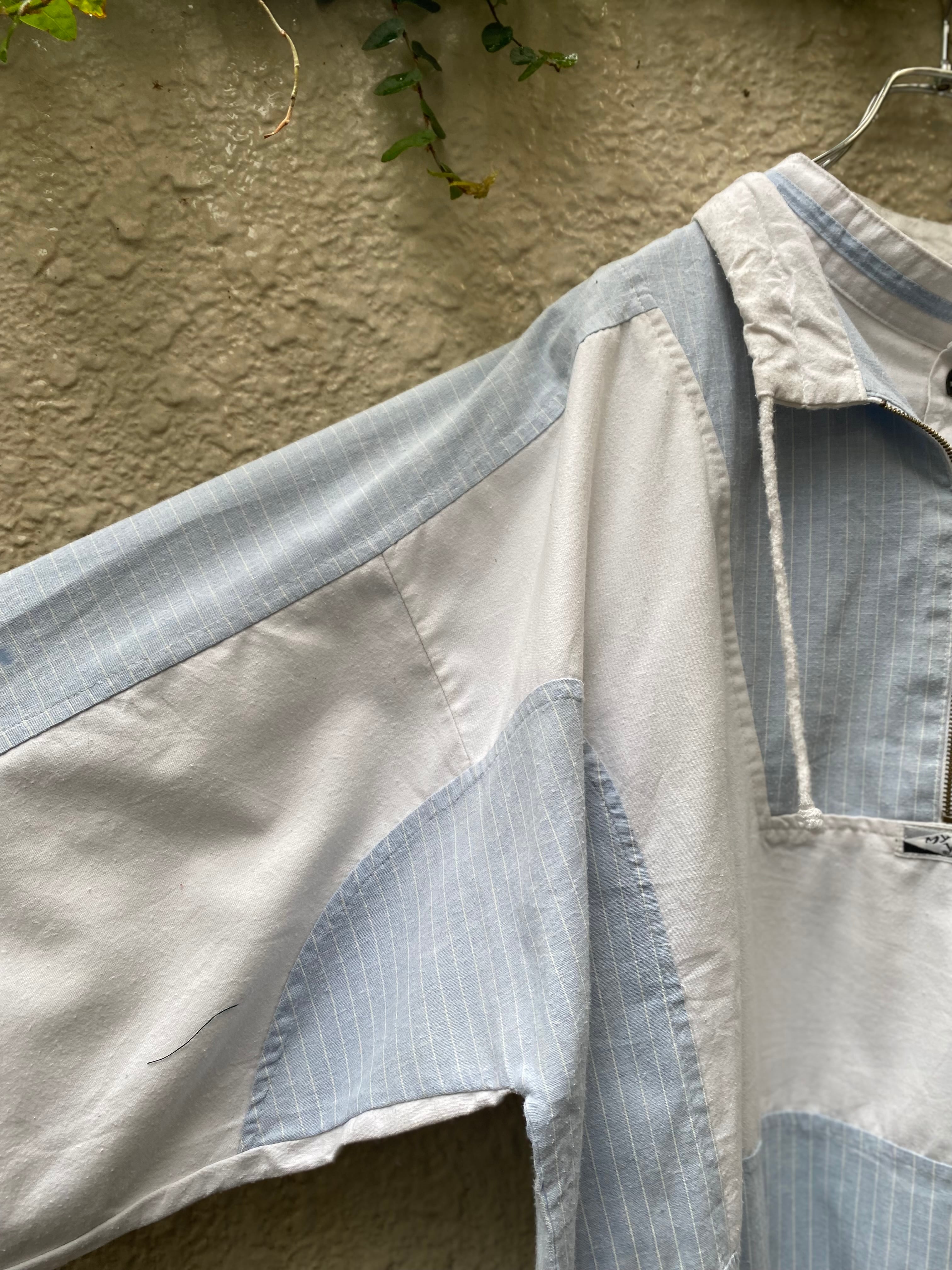 首元で3通りの着方が楽しめる切り替えポロシャツ。