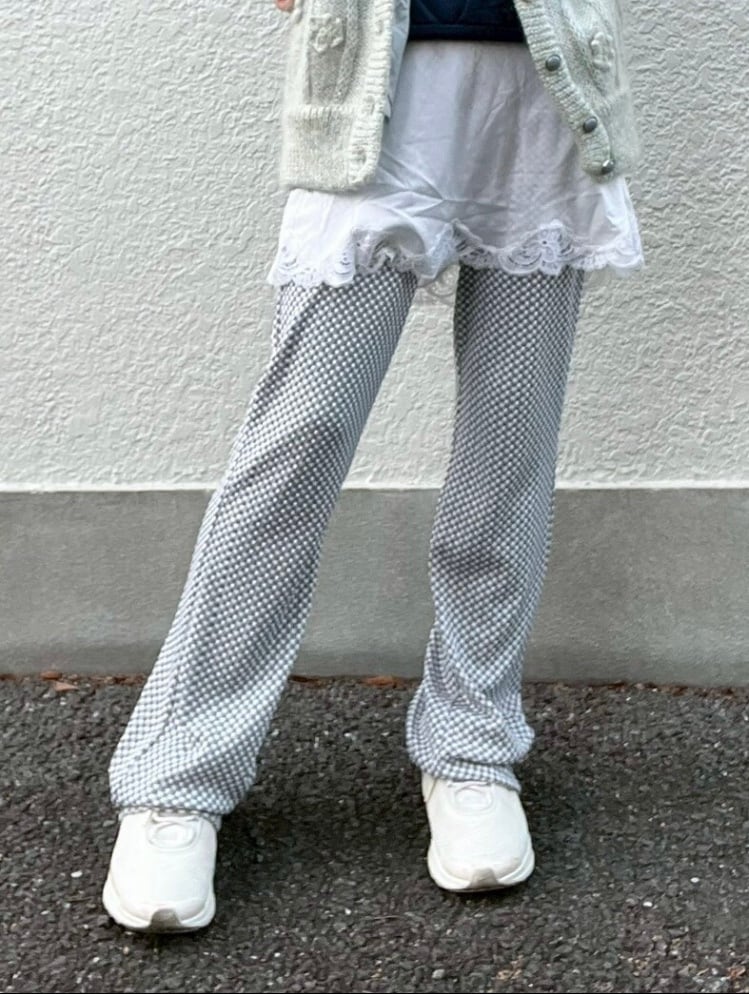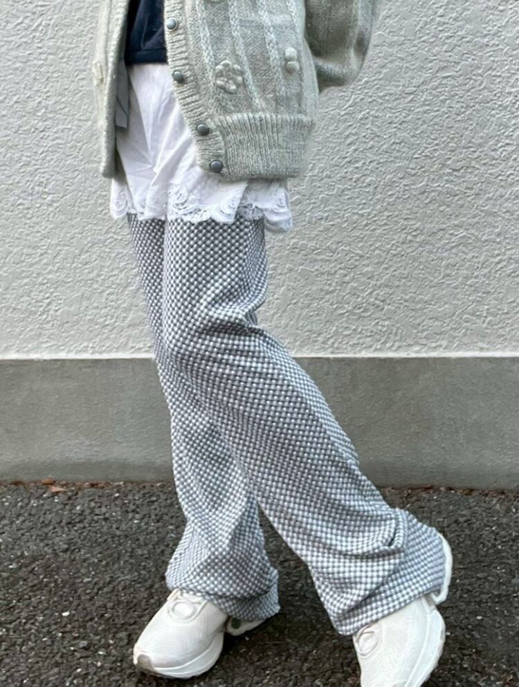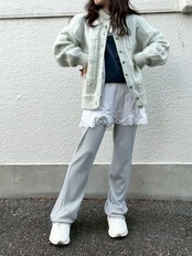 流行りのミニスカート系と合わせても主張が負けない一着。