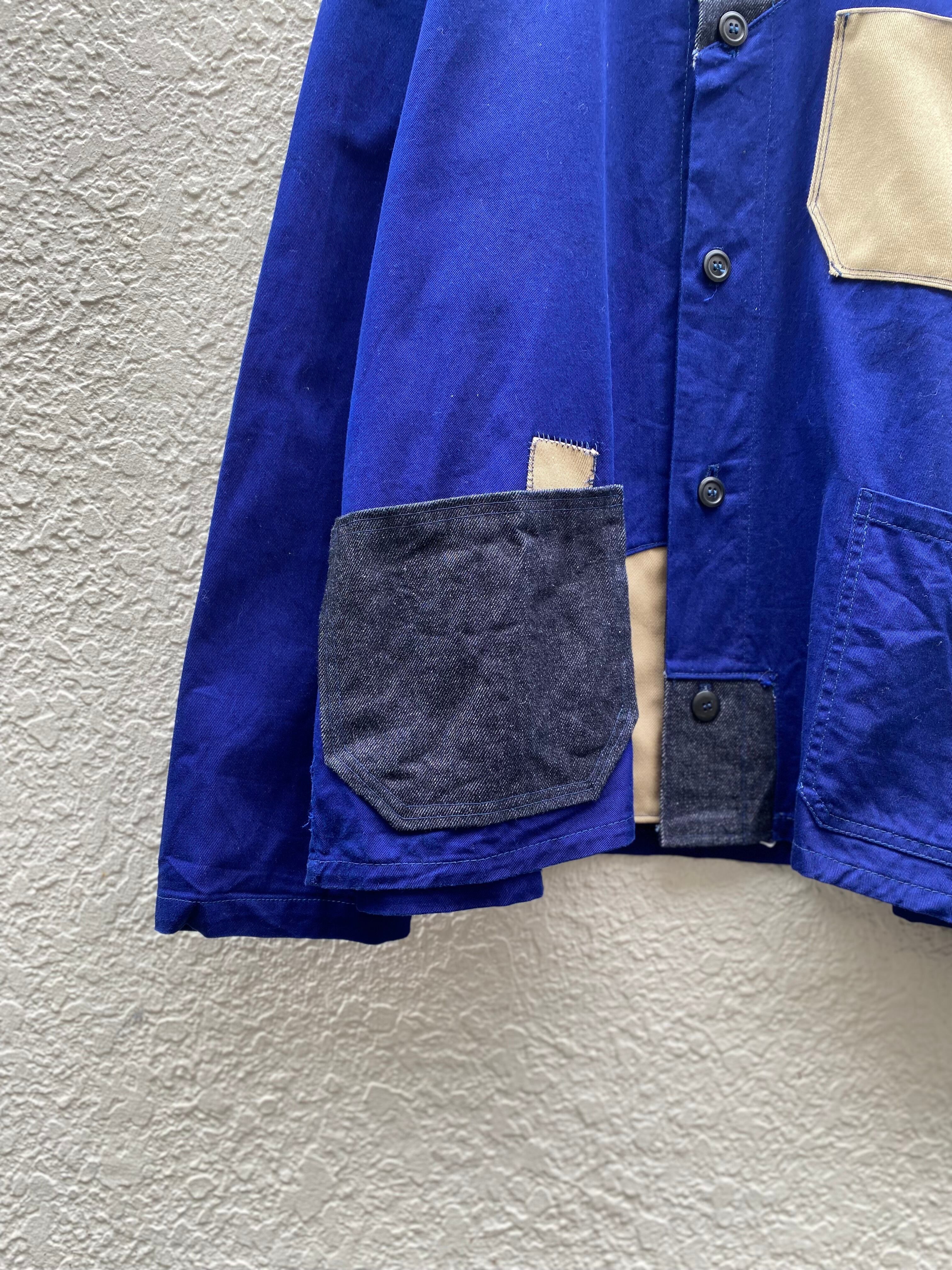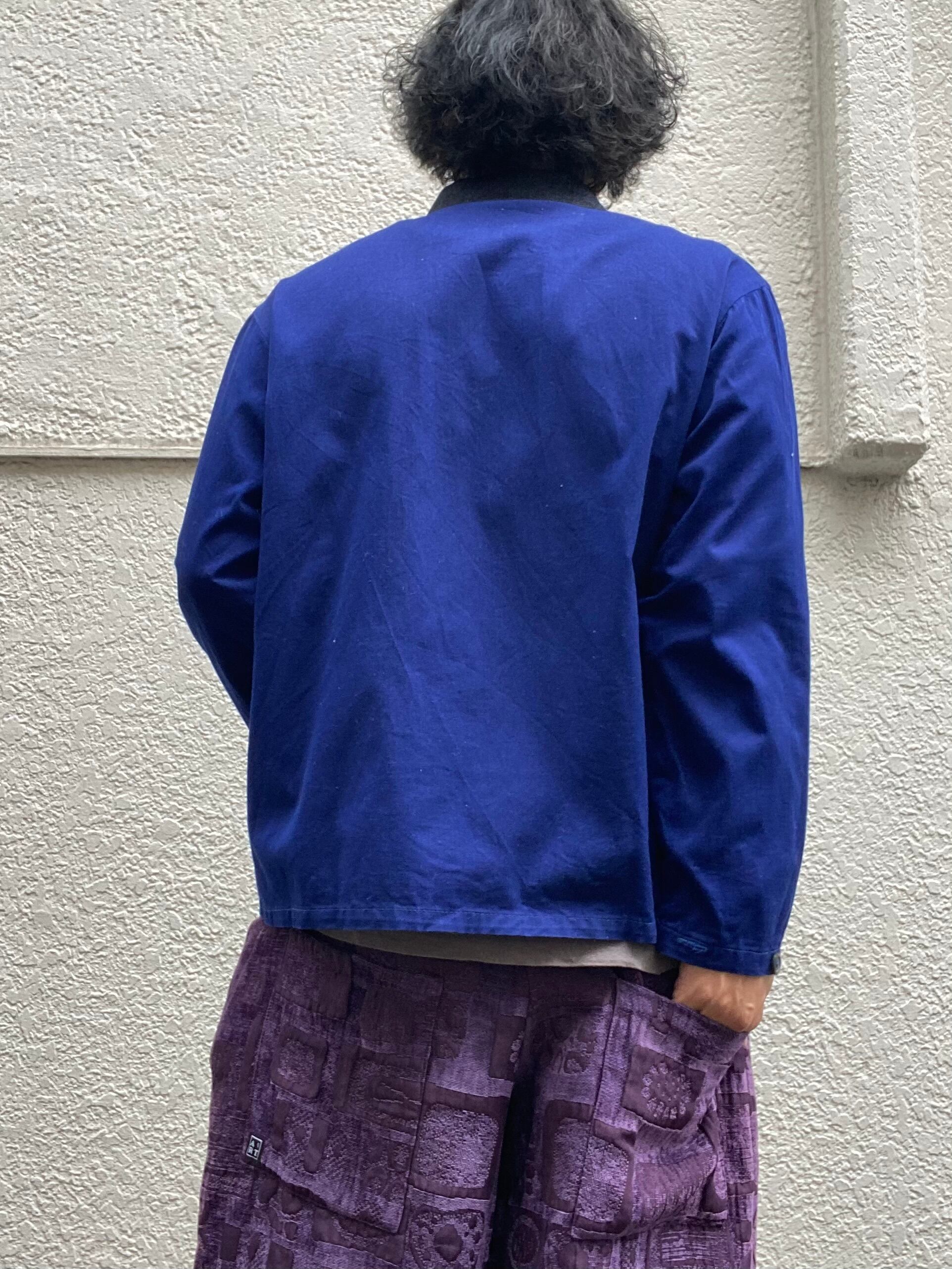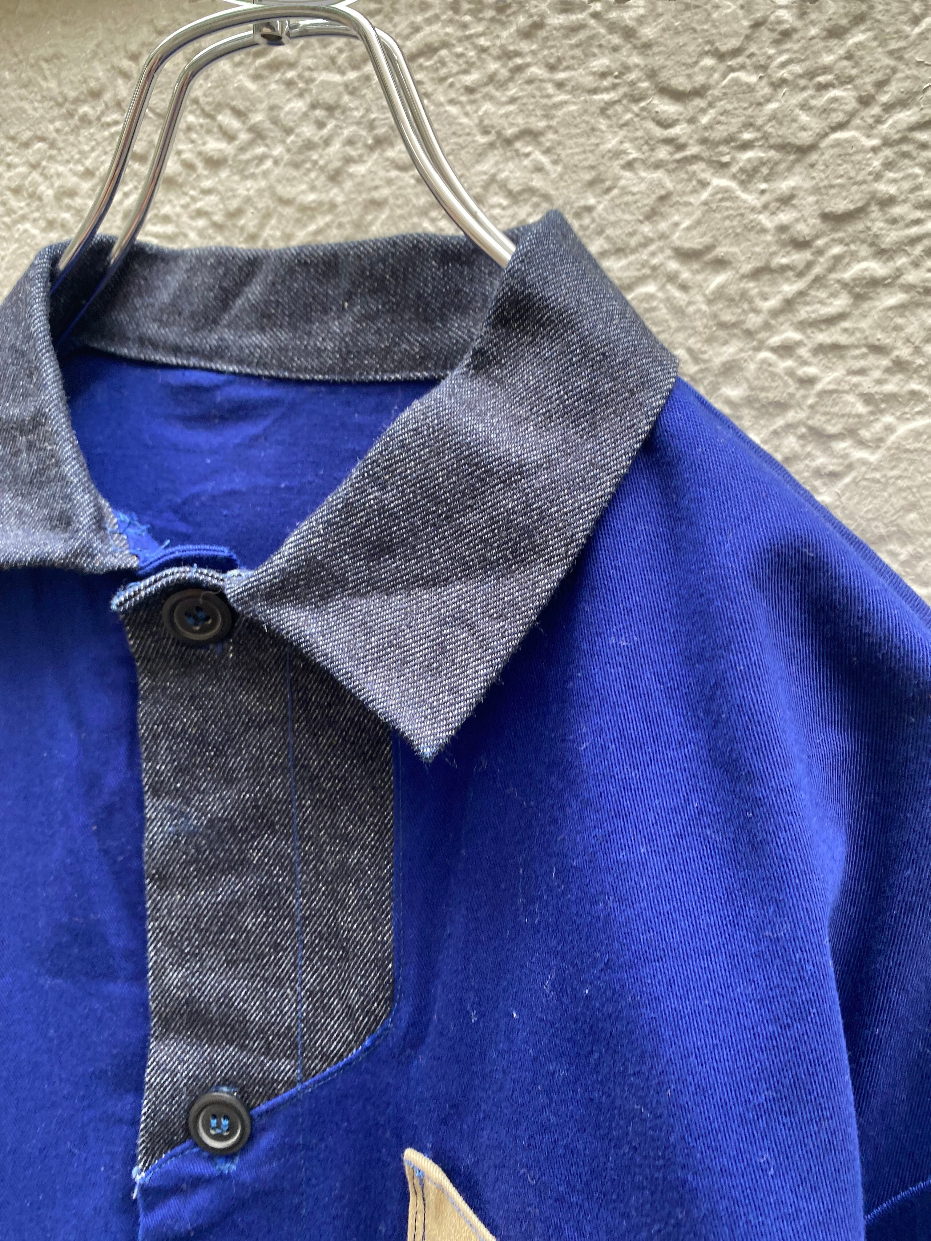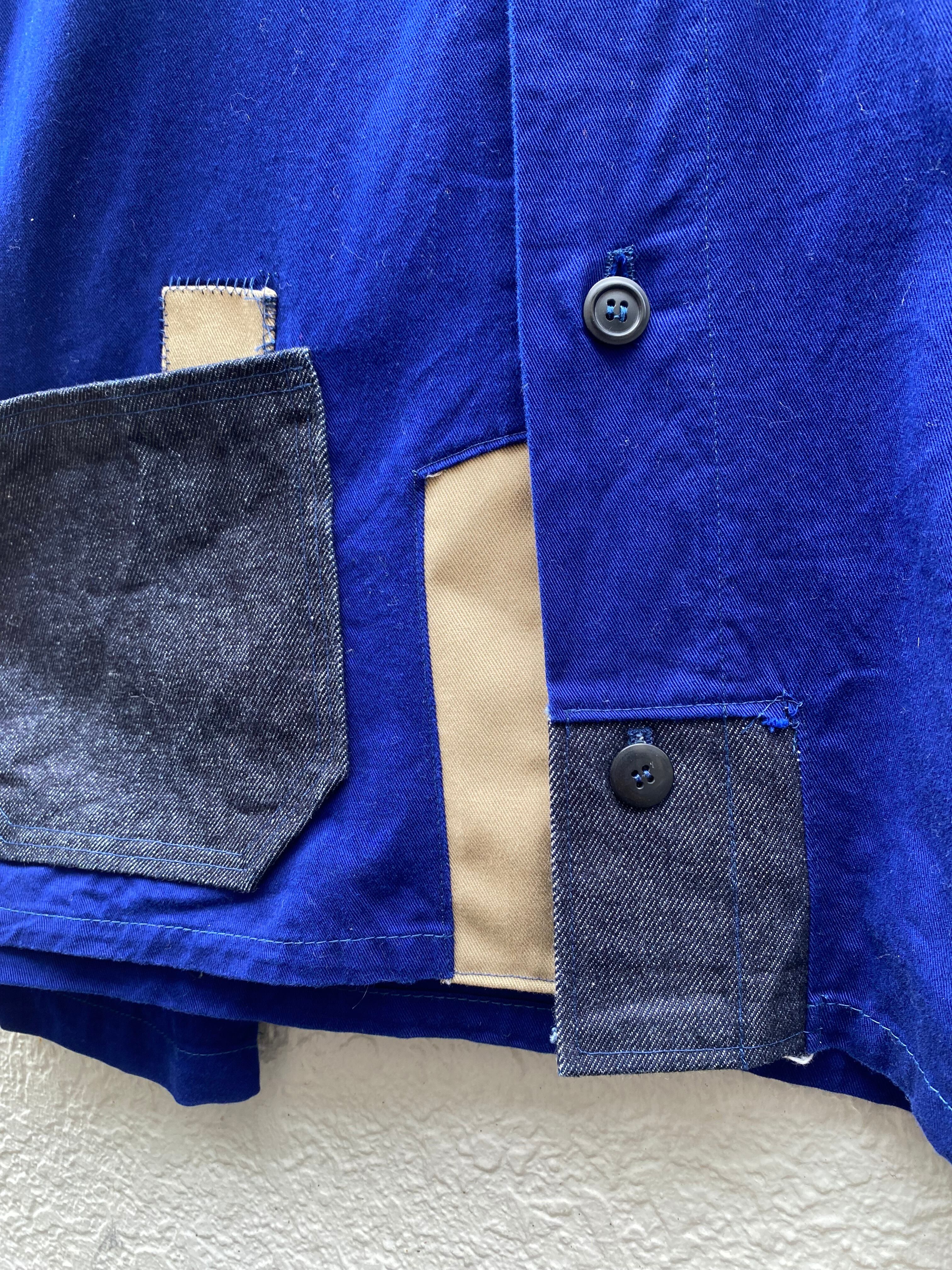 ボディはユーロジャケット、ブラック部分はジャパンビンテージのブラックデニム、ベージュ部分はアメリカのチノパン生地を使用したカルチャーMixのリメイクジャケット。