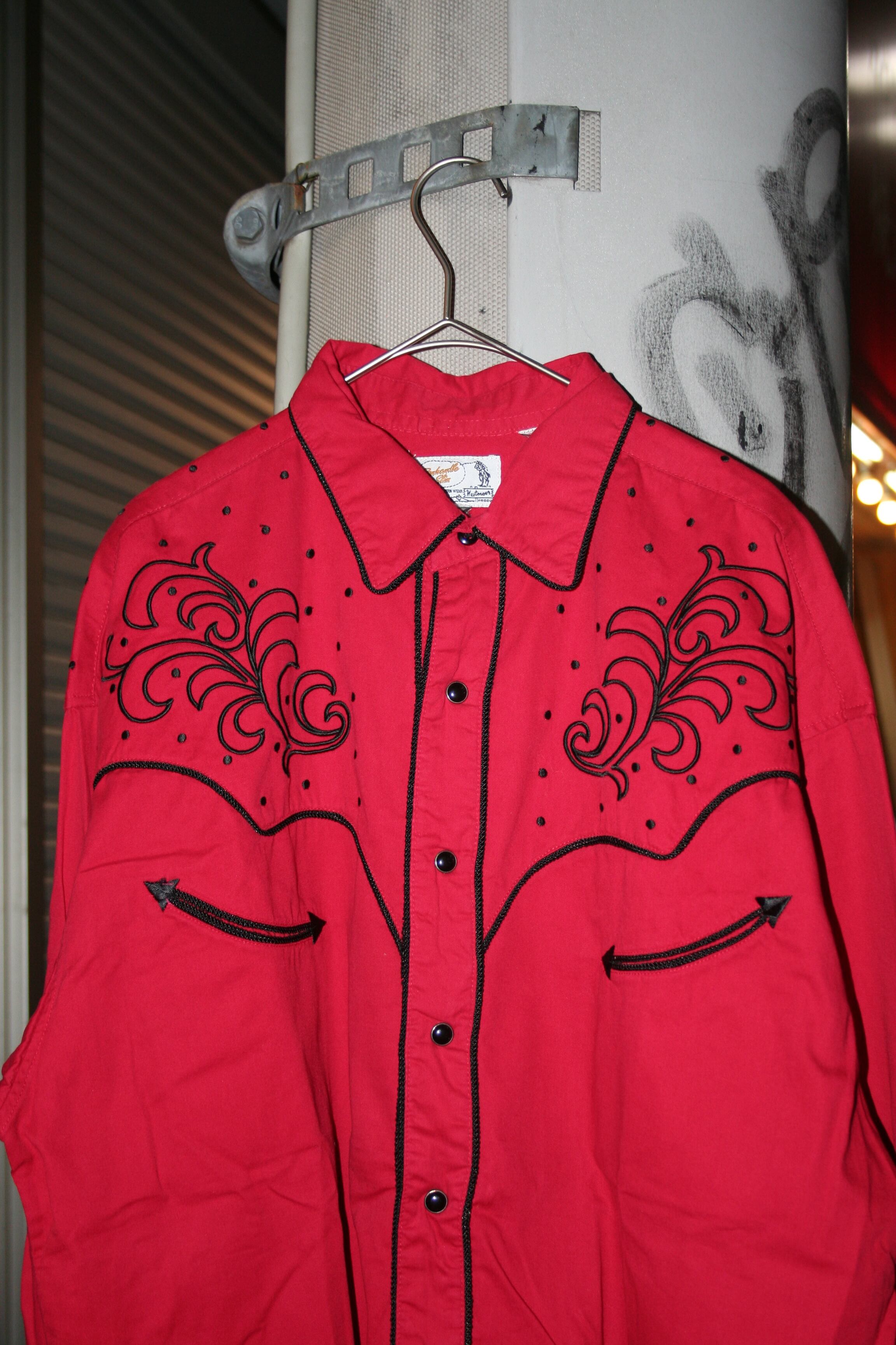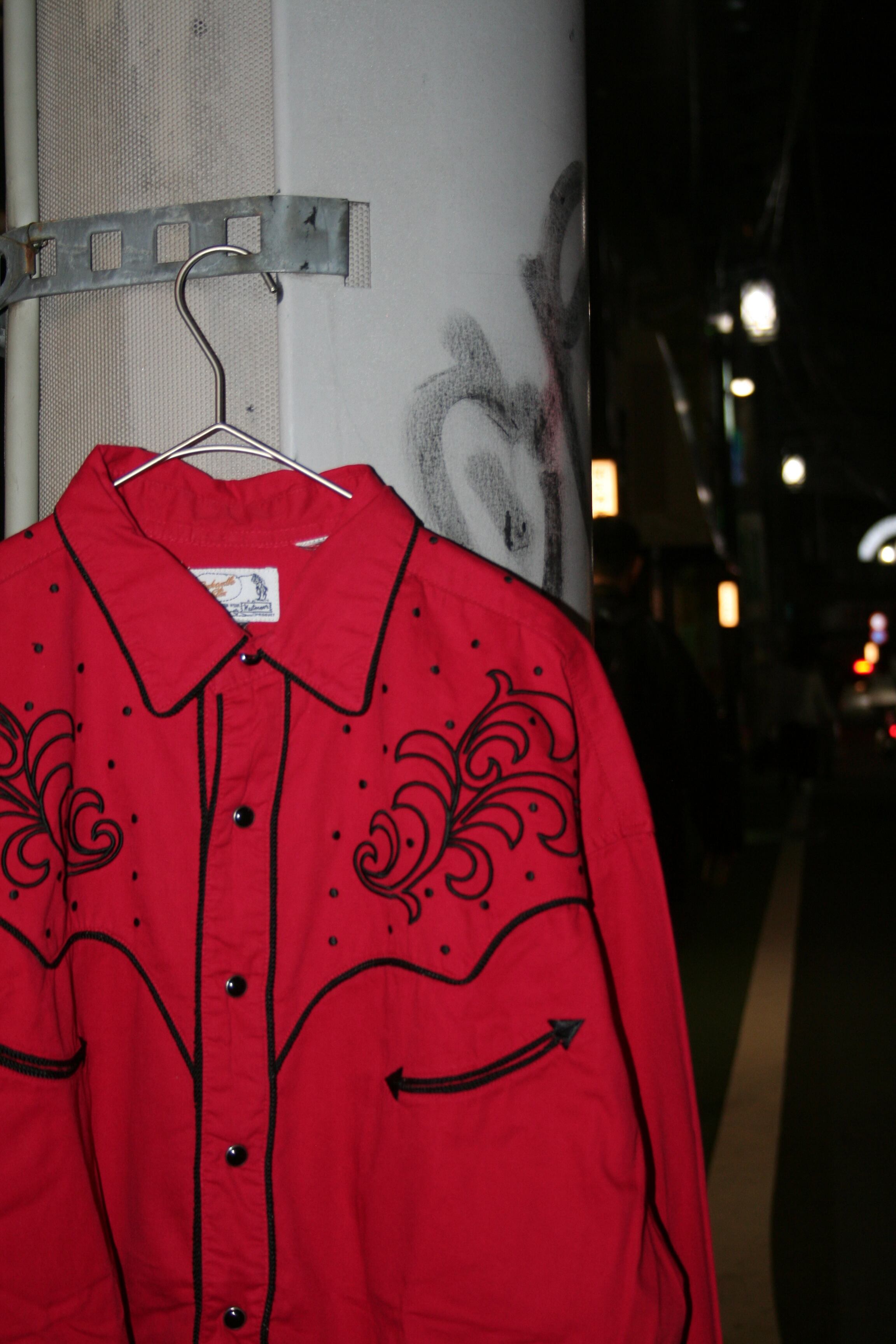 情熱的な赤とウエスタン特有のステッチが効いてますね。秋冬でインナーとしても使えそう。