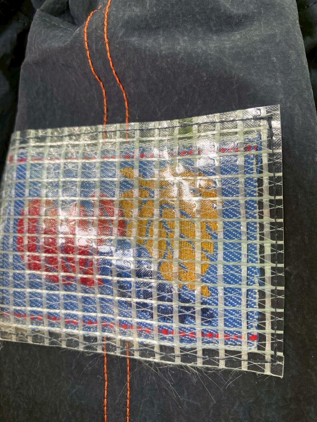 フロントはビニールなどで使われるPVC生地を使用し、中のリボンタグが透ける仕様となっています。