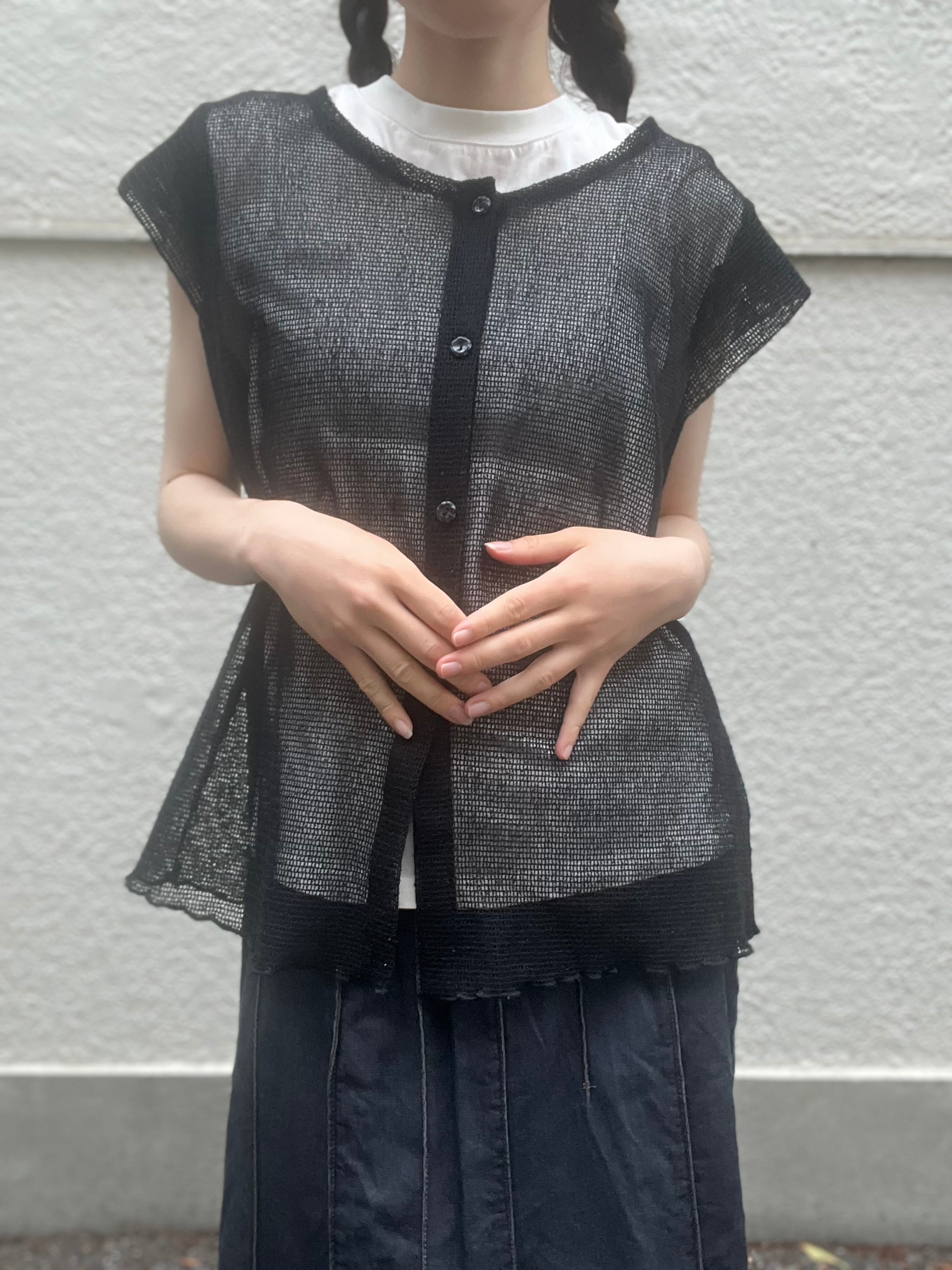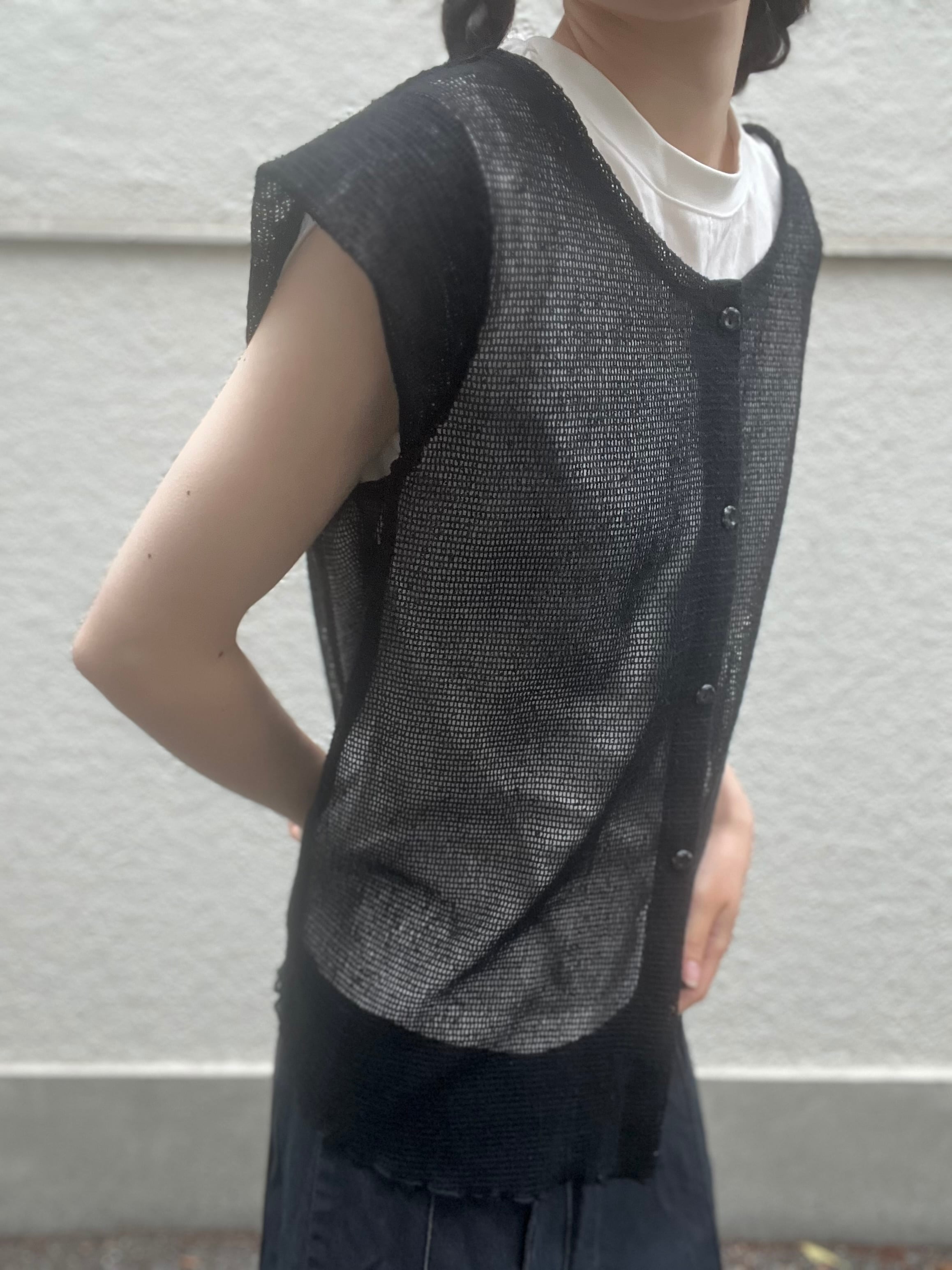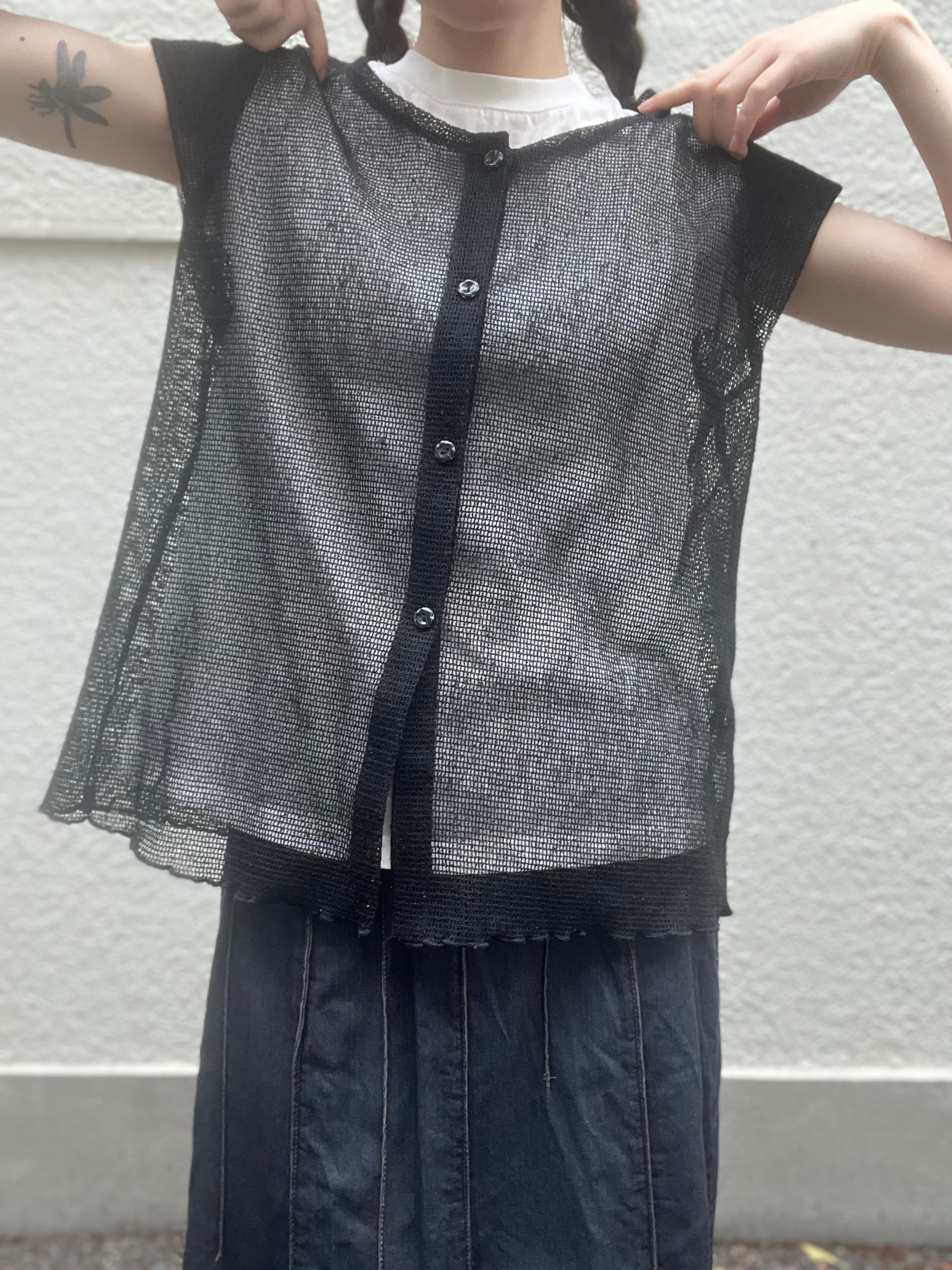 ノースリーブに近いシアーシャツ。
