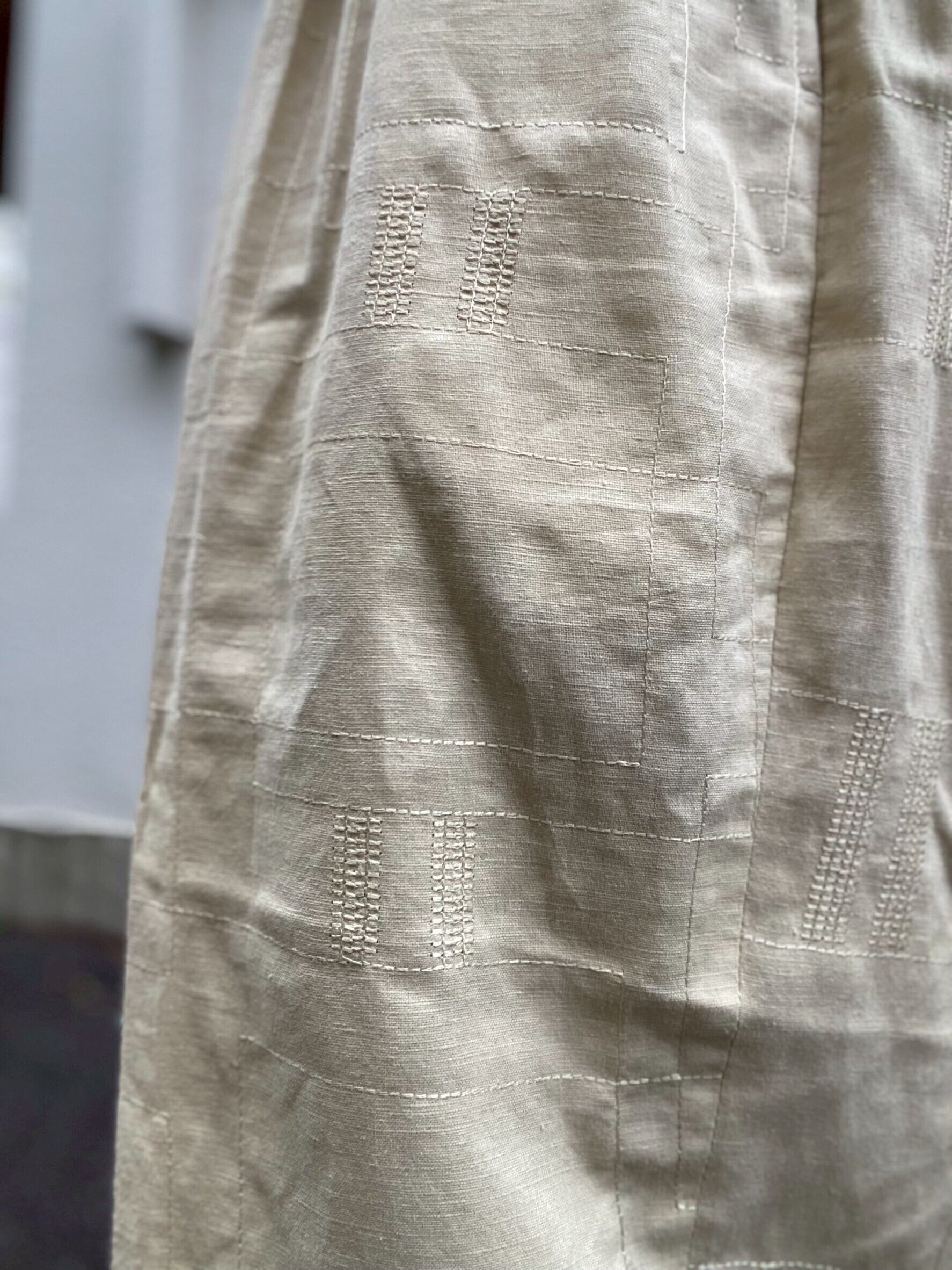 綺麗なクリーム色の上に遊び心のあるステッチが可愛らしくもクール。