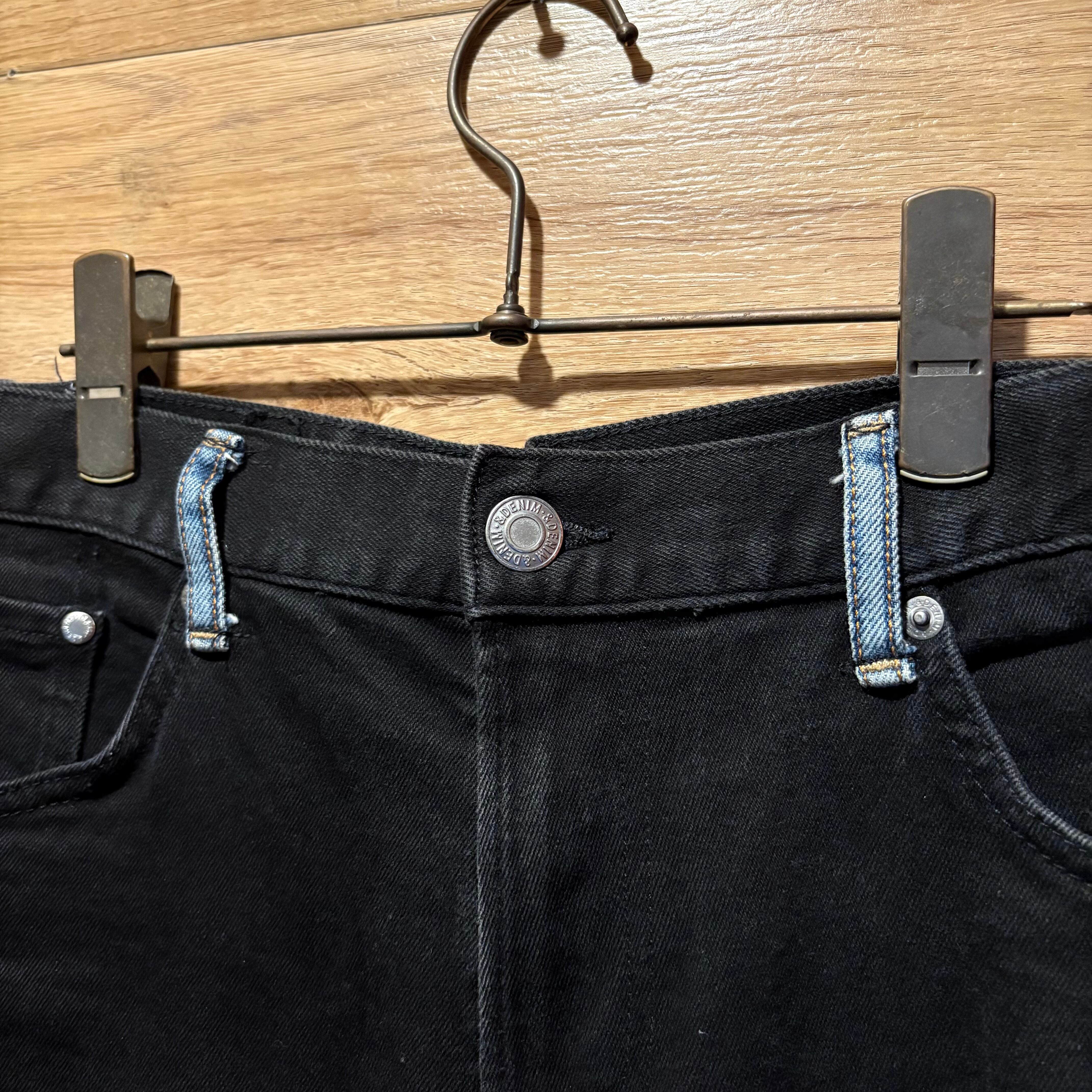 伸縮性のあるブラックデニムを細身フレアに仕立てました。