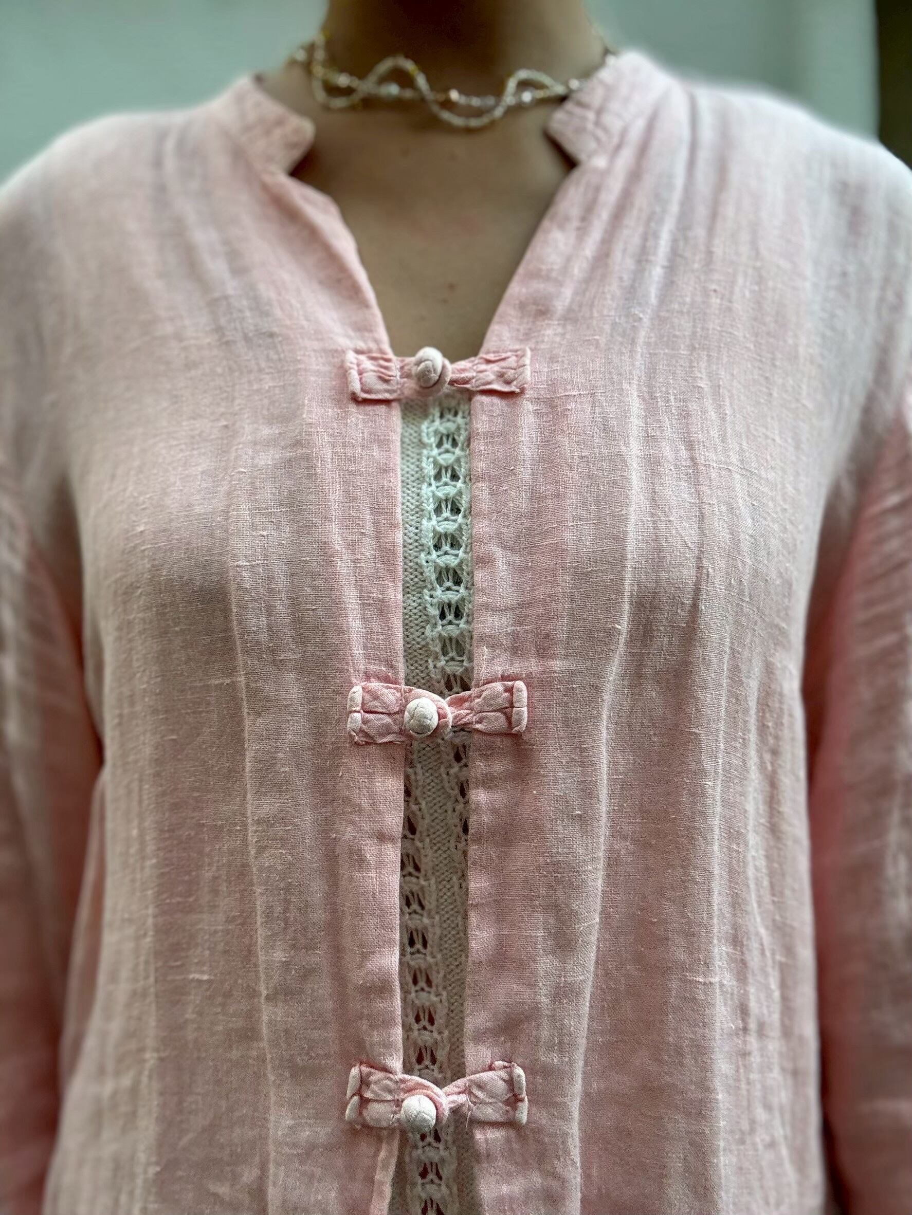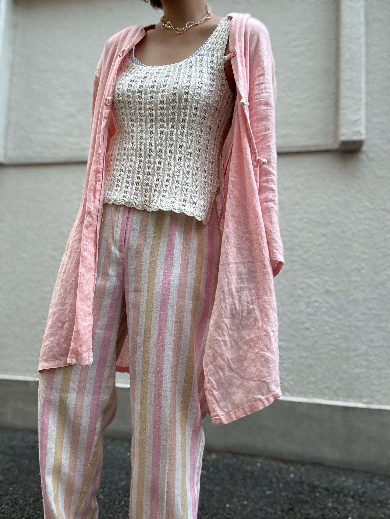 風をたっぷりとふくみながら、肌離れも良い柔らかいタイプのリネン生地。