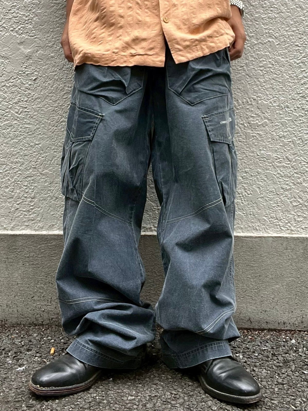 ポケット位置が少しズレた、男臭さ満点なワイドパンツ。