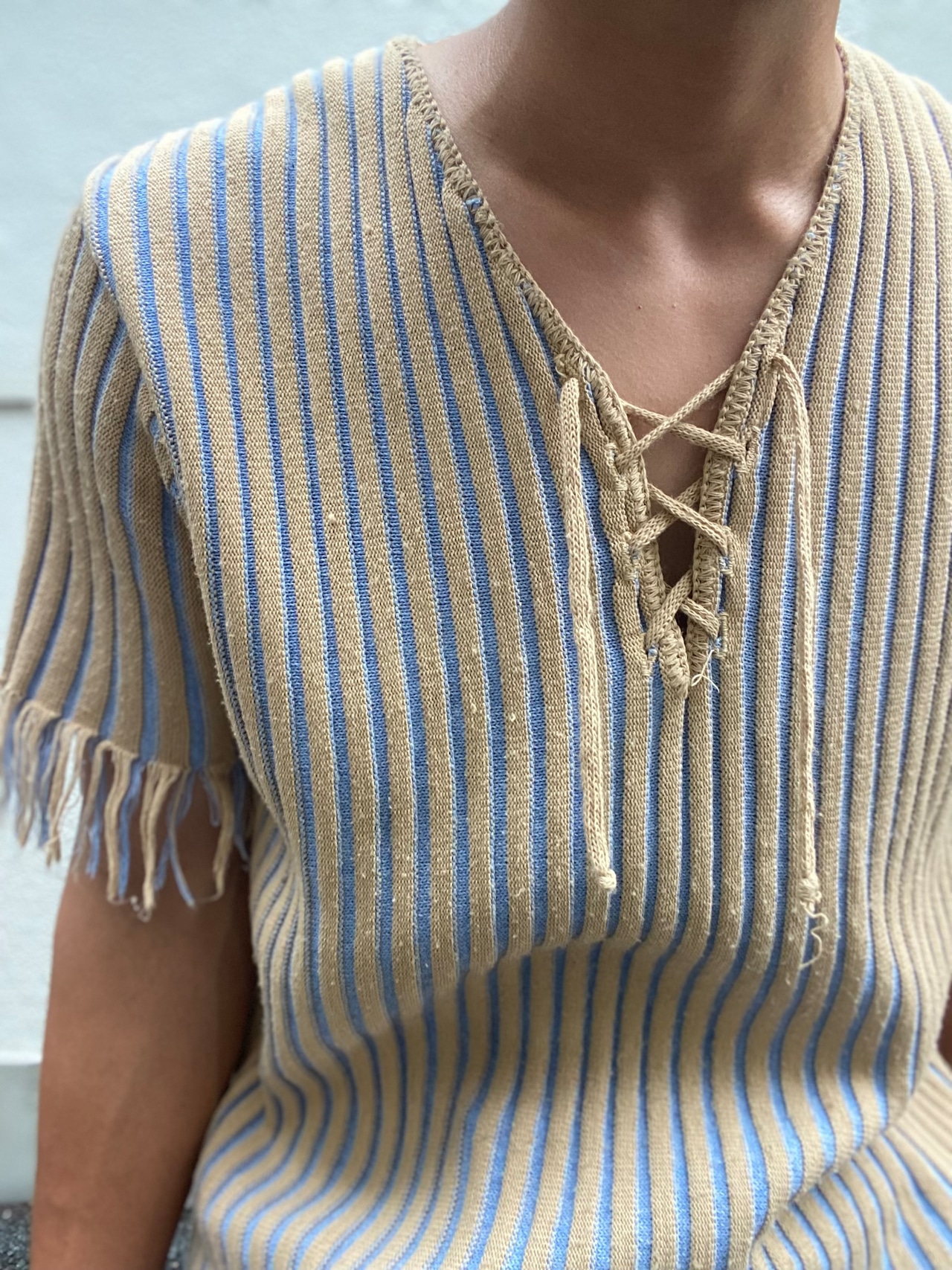 織りを途中で諦めてしまったようなデザインは、インナーから覗かせてもいいし、一枚でもバッチリなサイズ感。