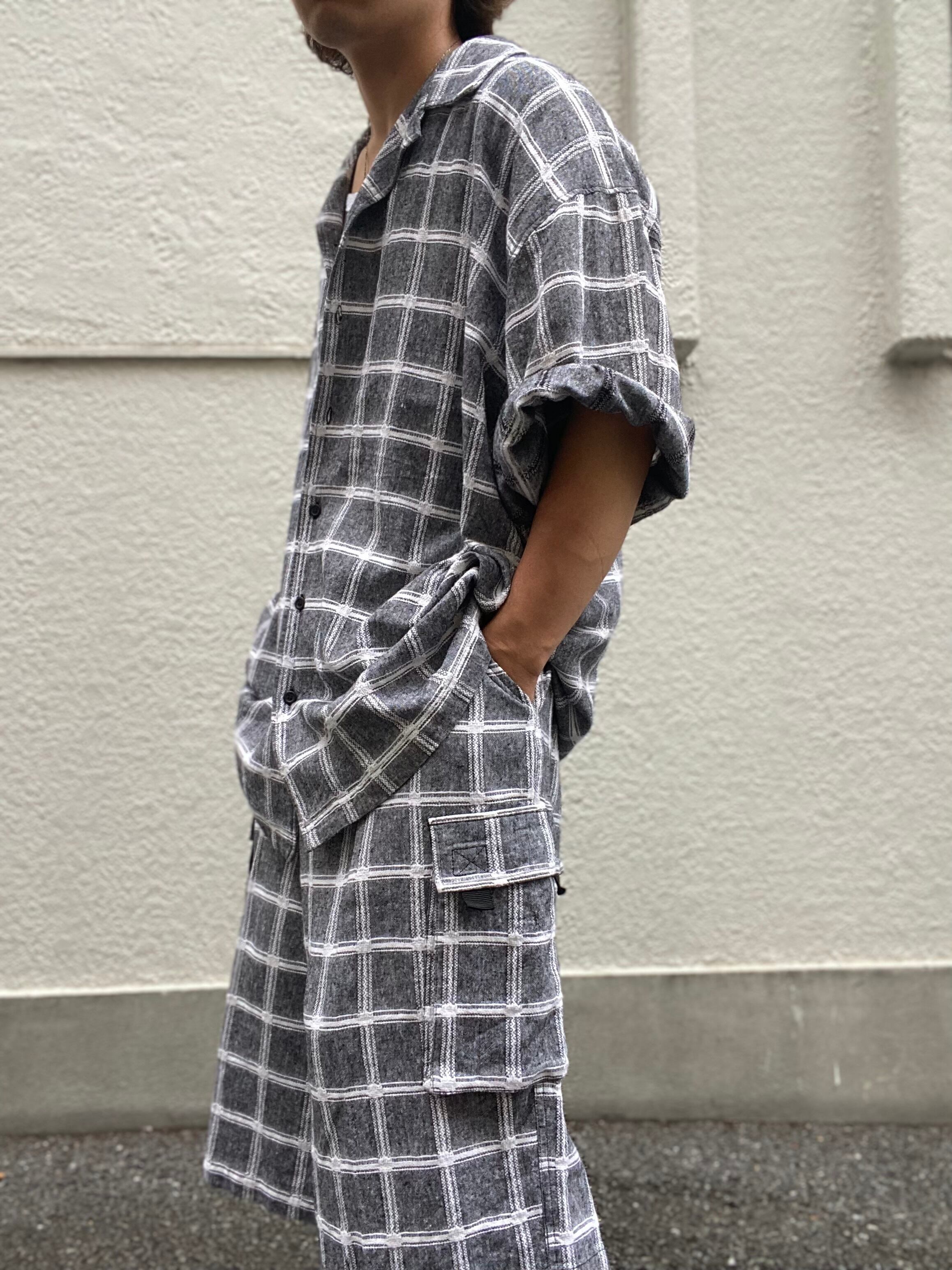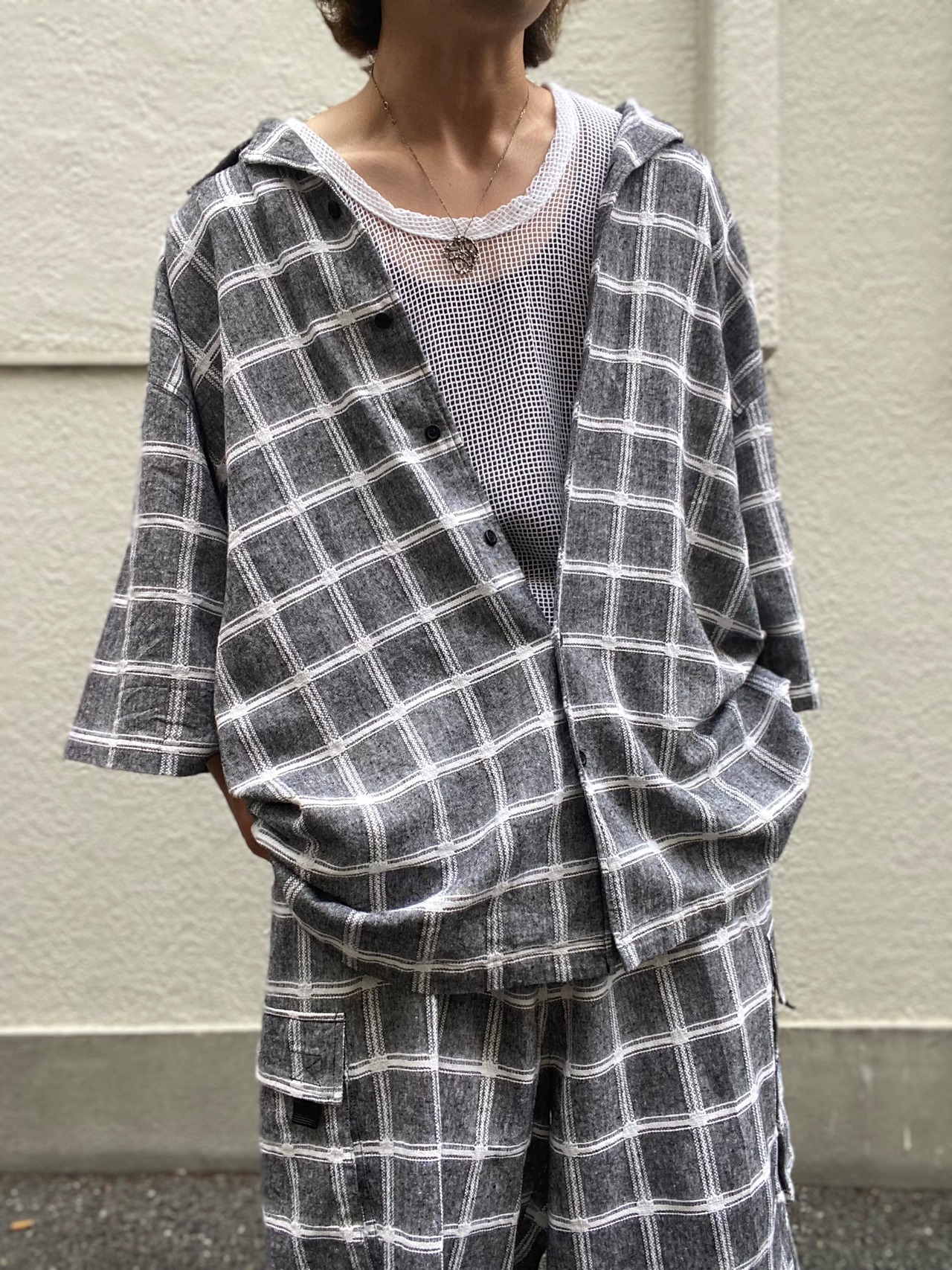 腕が8部まで埋める良いゆるさ+パンツはカーゴポケット付き。
