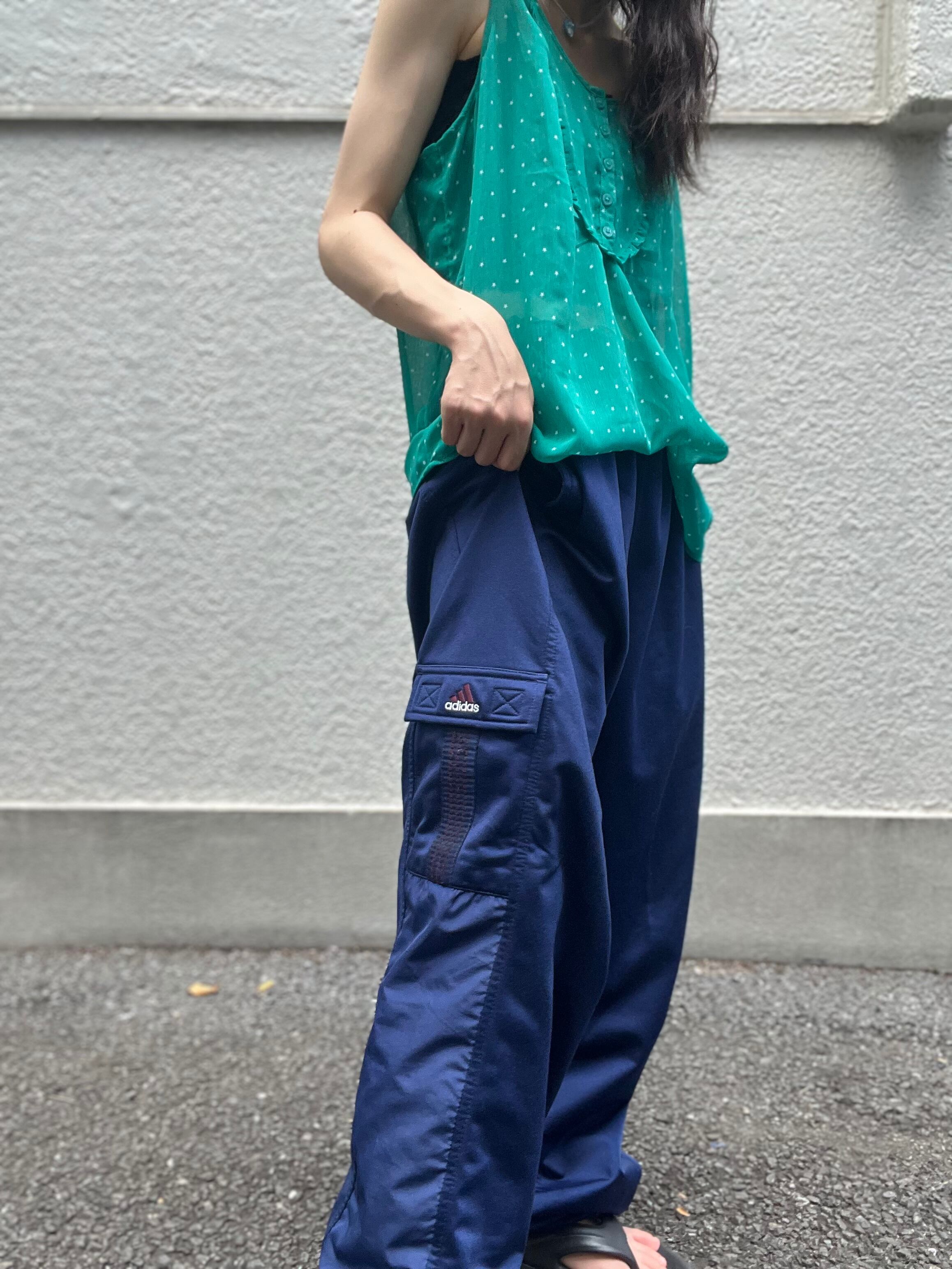 スポーティーなアイテムですが、あえてレースのブラウスや、今回のような透け感のあるフェミニンなトップスと合わせるのも素敵です。