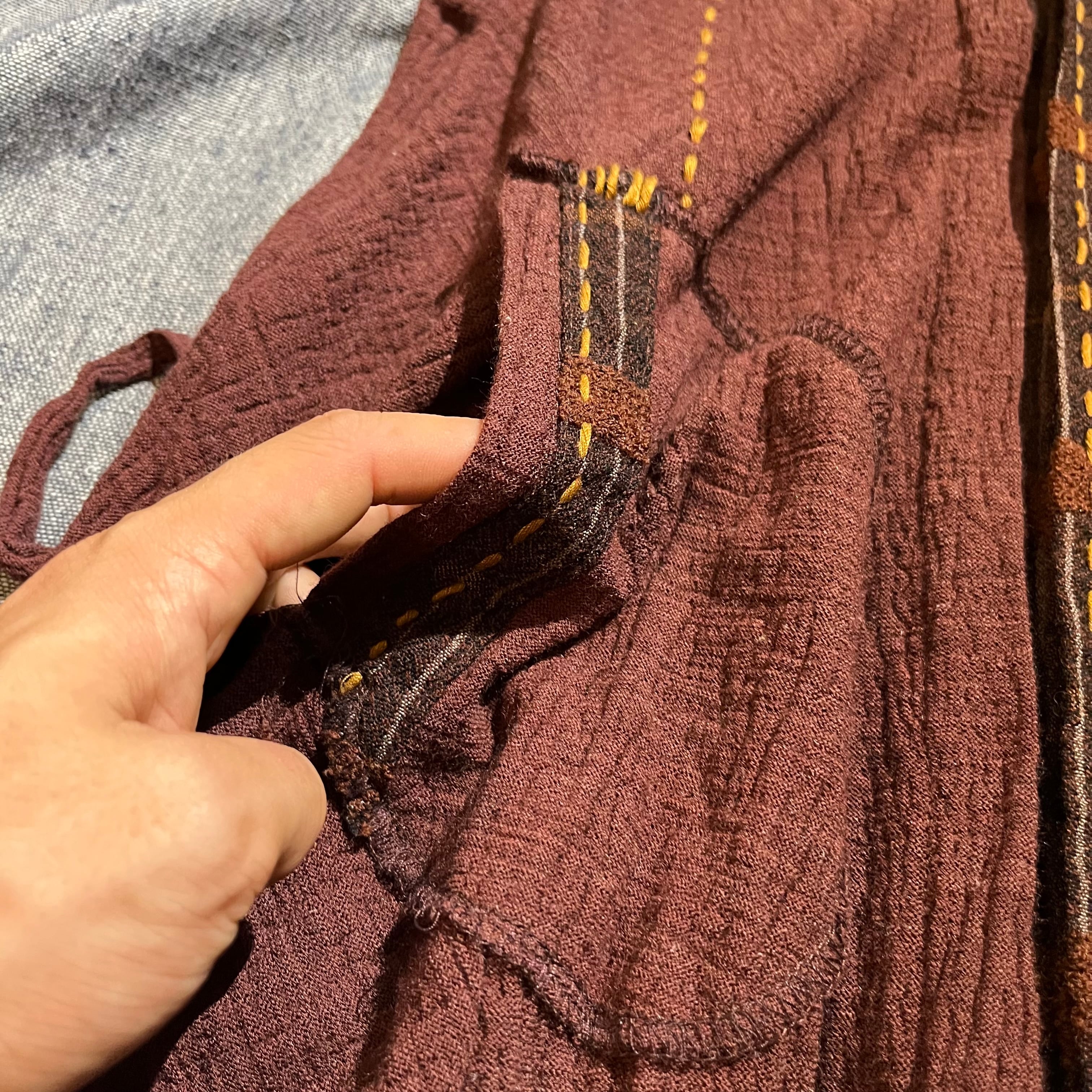 その上を道標のように走るのは、ざっくりとした手仕事の温もりを感じさせるステッチ。