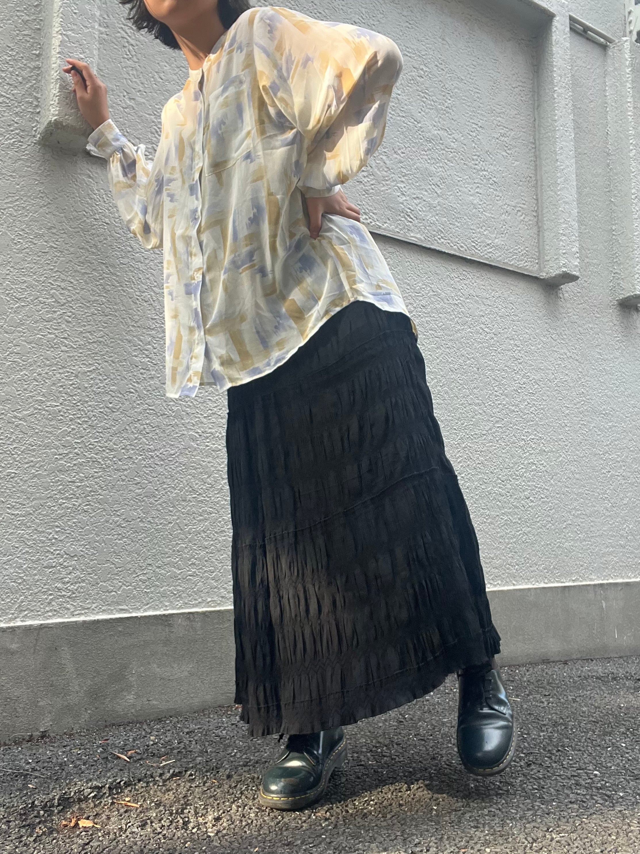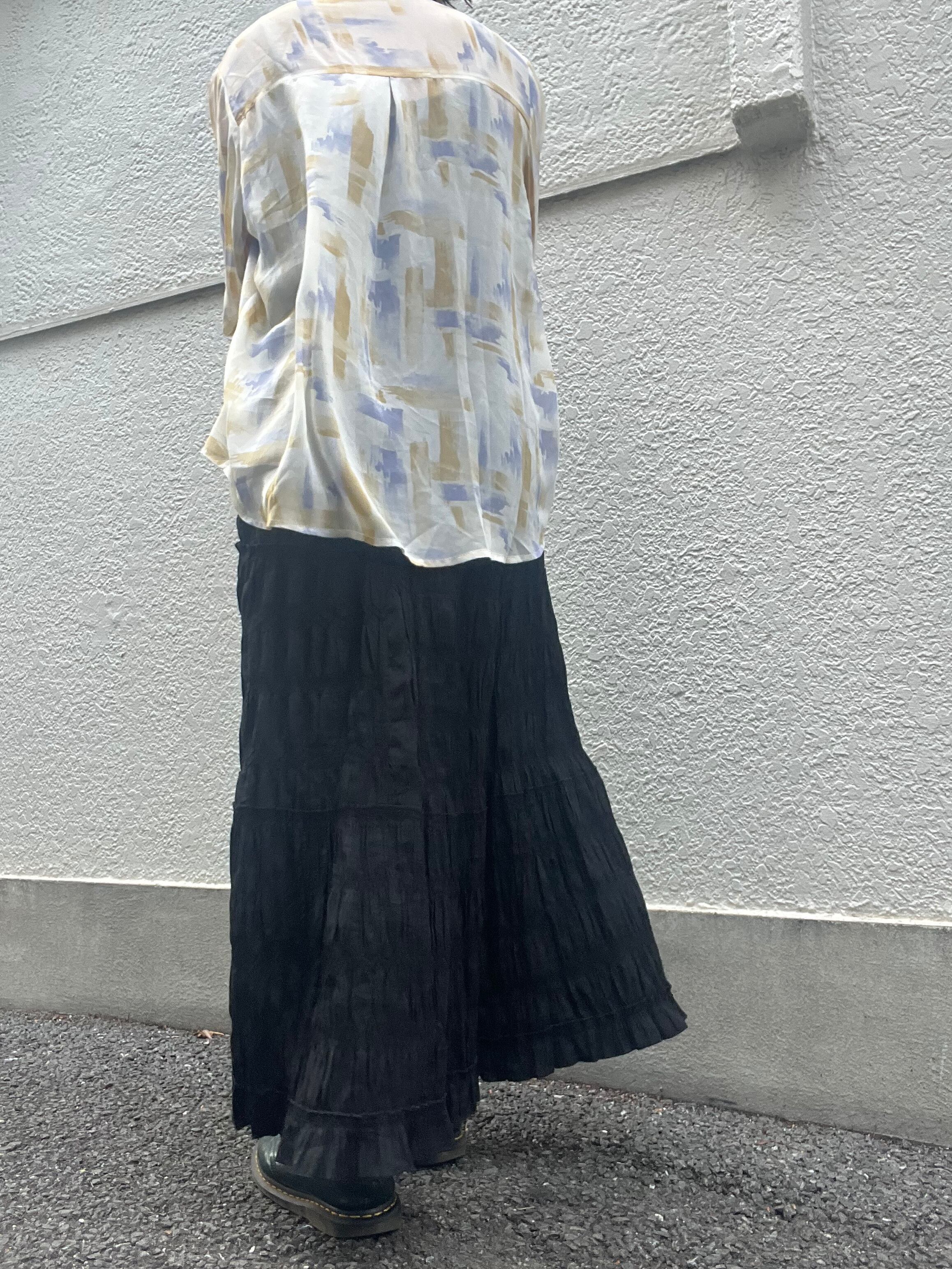 シンプルでありながら、動くたびに広がる軽やかなドレープが目を引きます。
