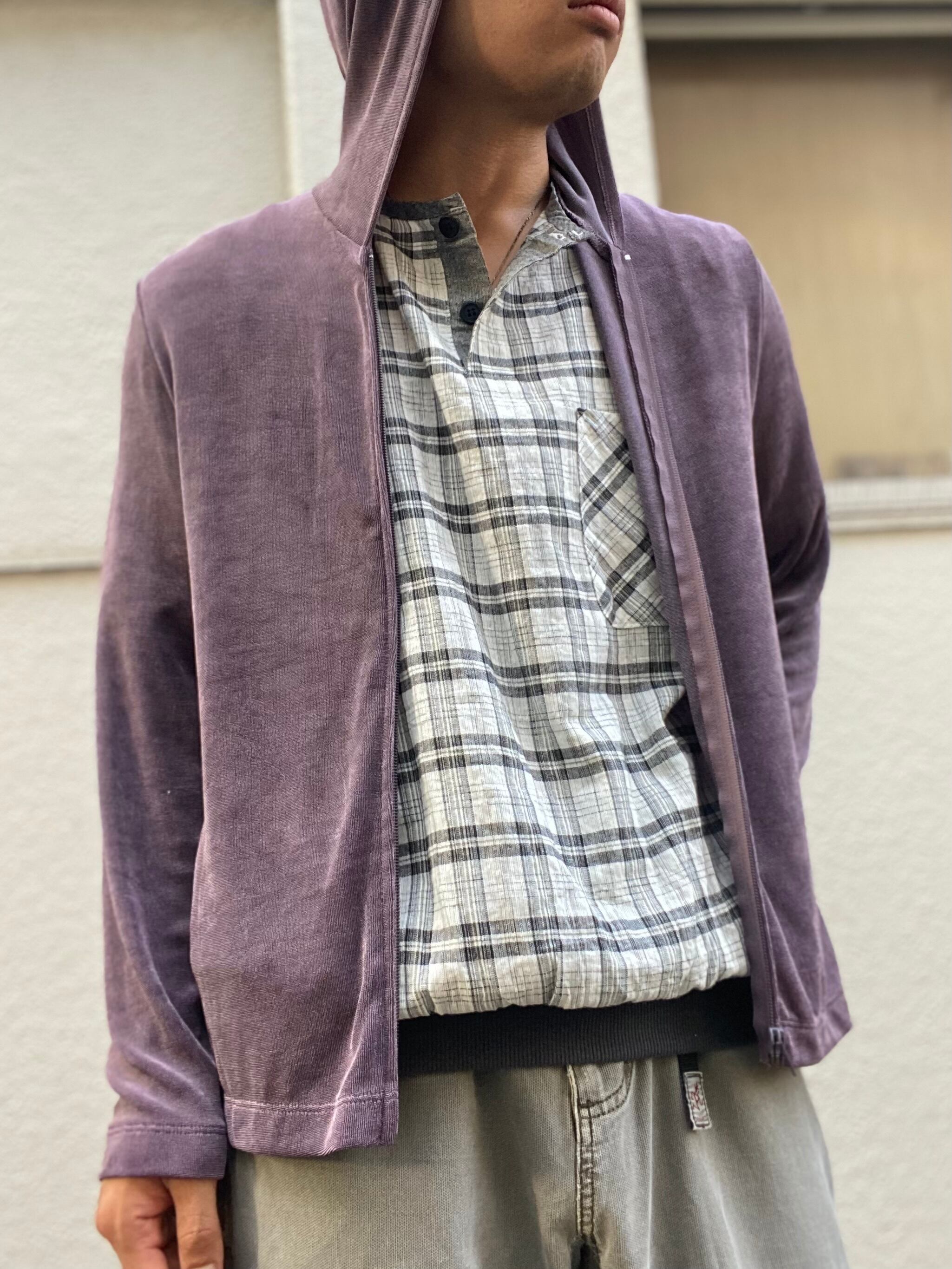 光の当たり方で表情を変えるこのジップパーカーは、ただのラフ着じゃ終わりません。