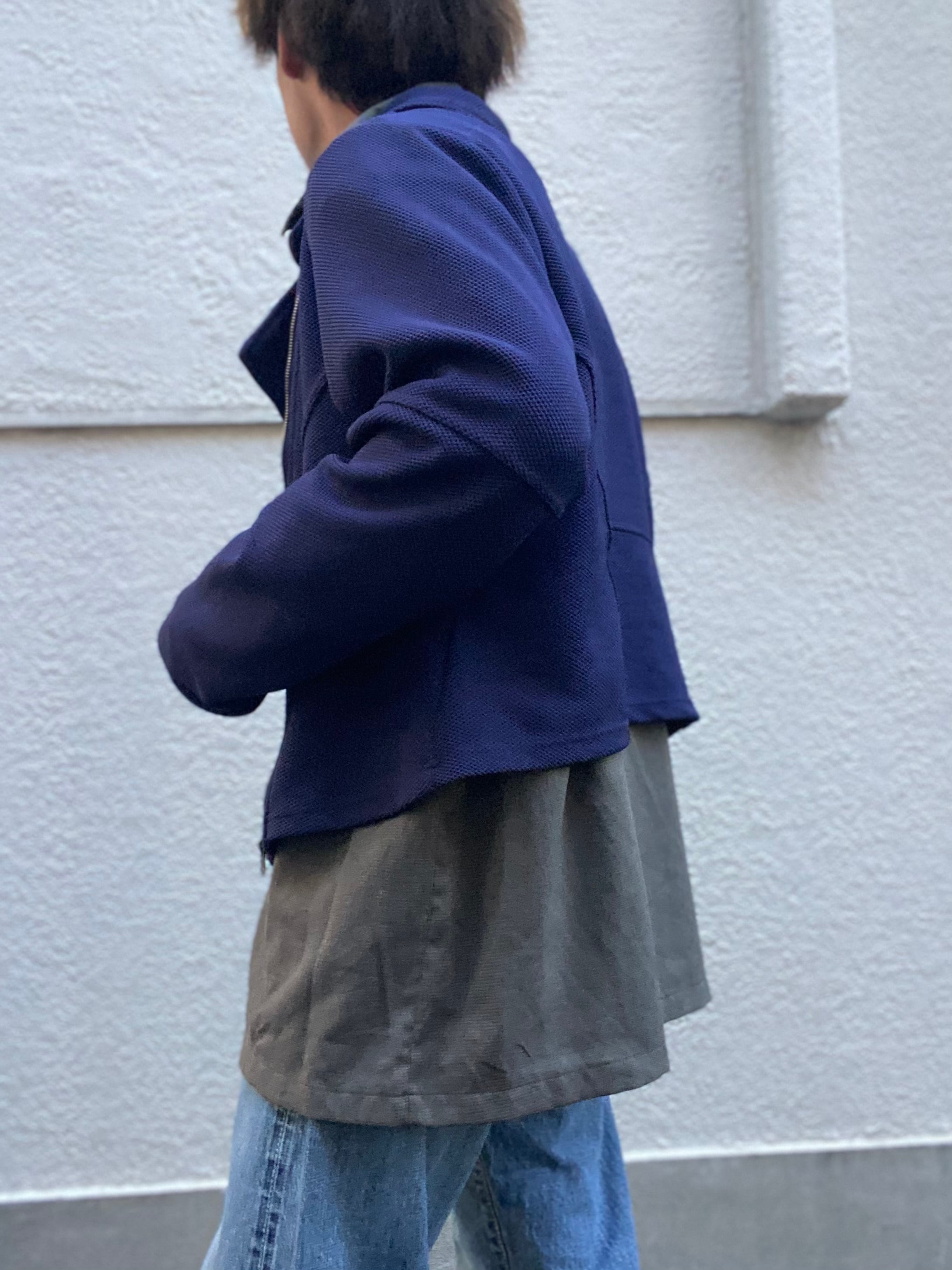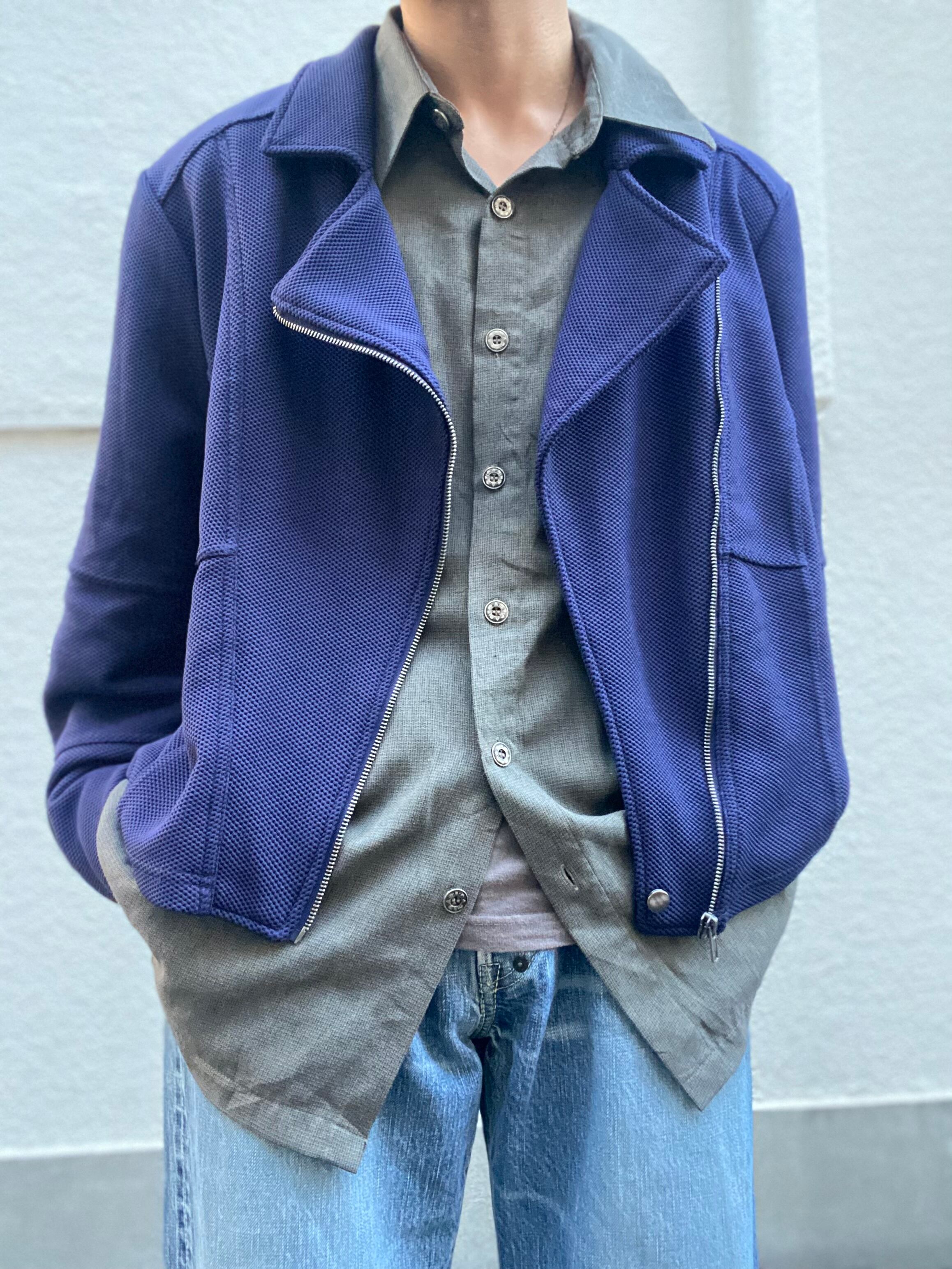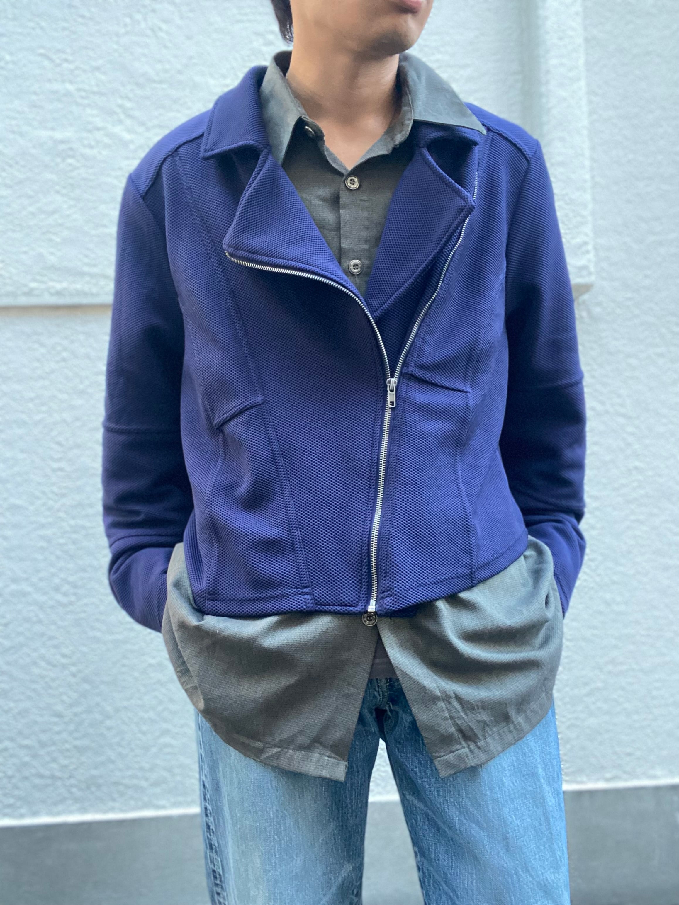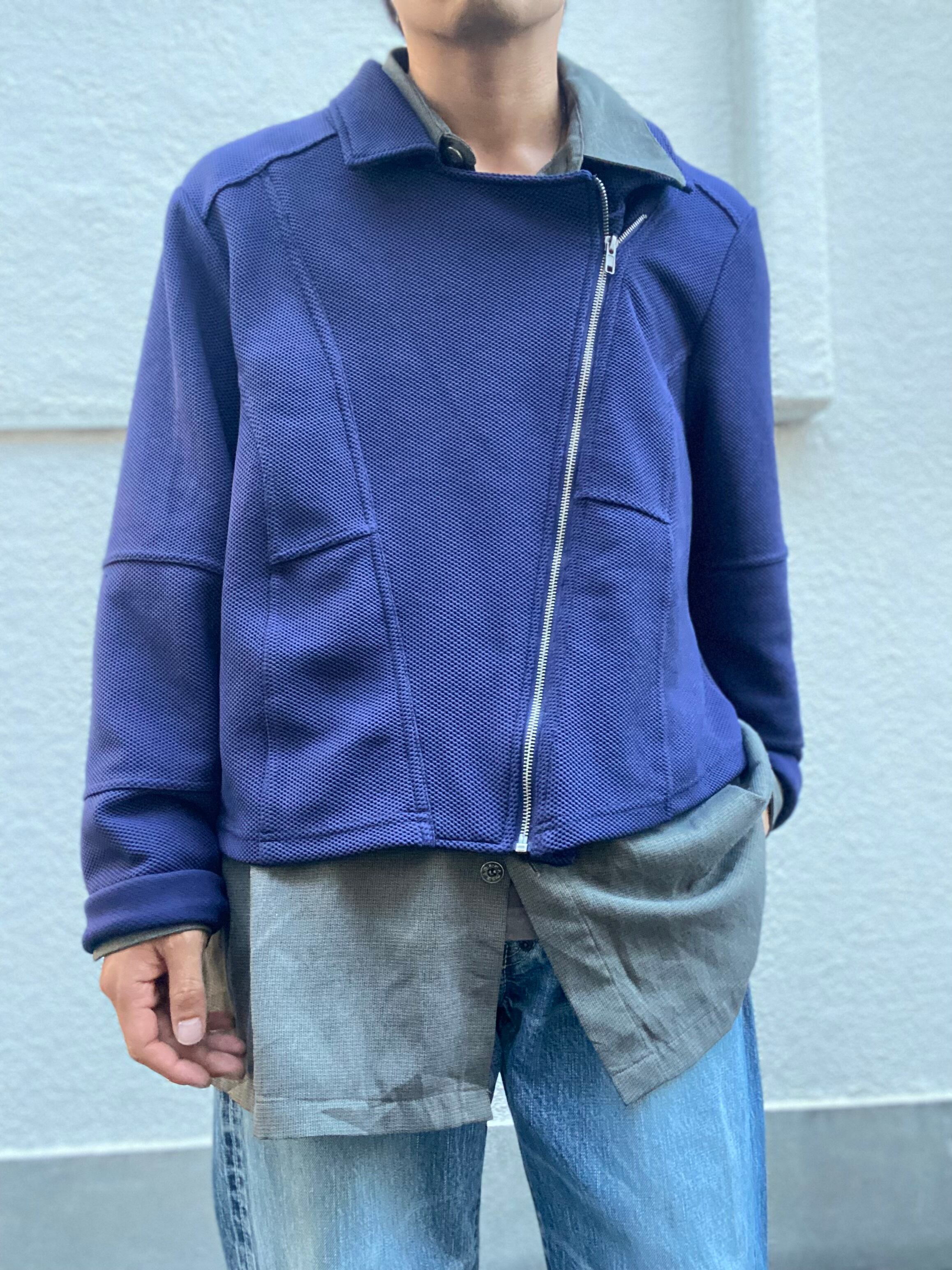 男らしいライダースジャケットをベースに、異素材で落とし込んだ柔らかな風合い。
