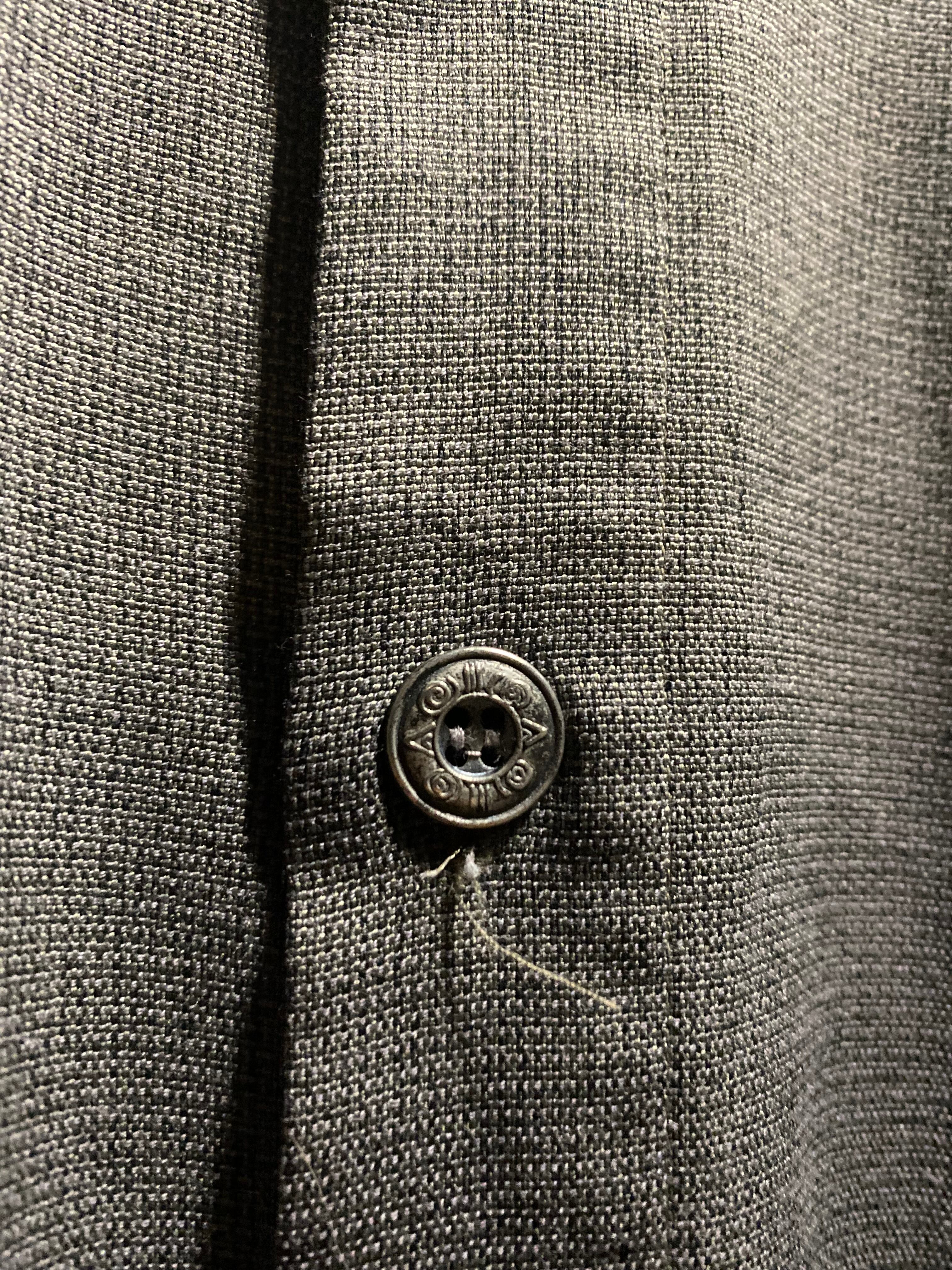 落ち感がありつつ単調にならない織り。メタルボタンが程よいアクセントに。