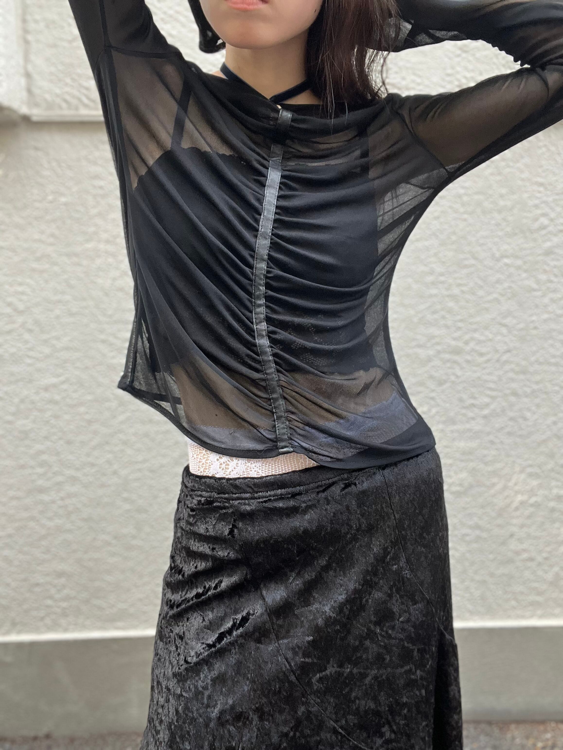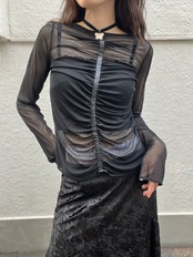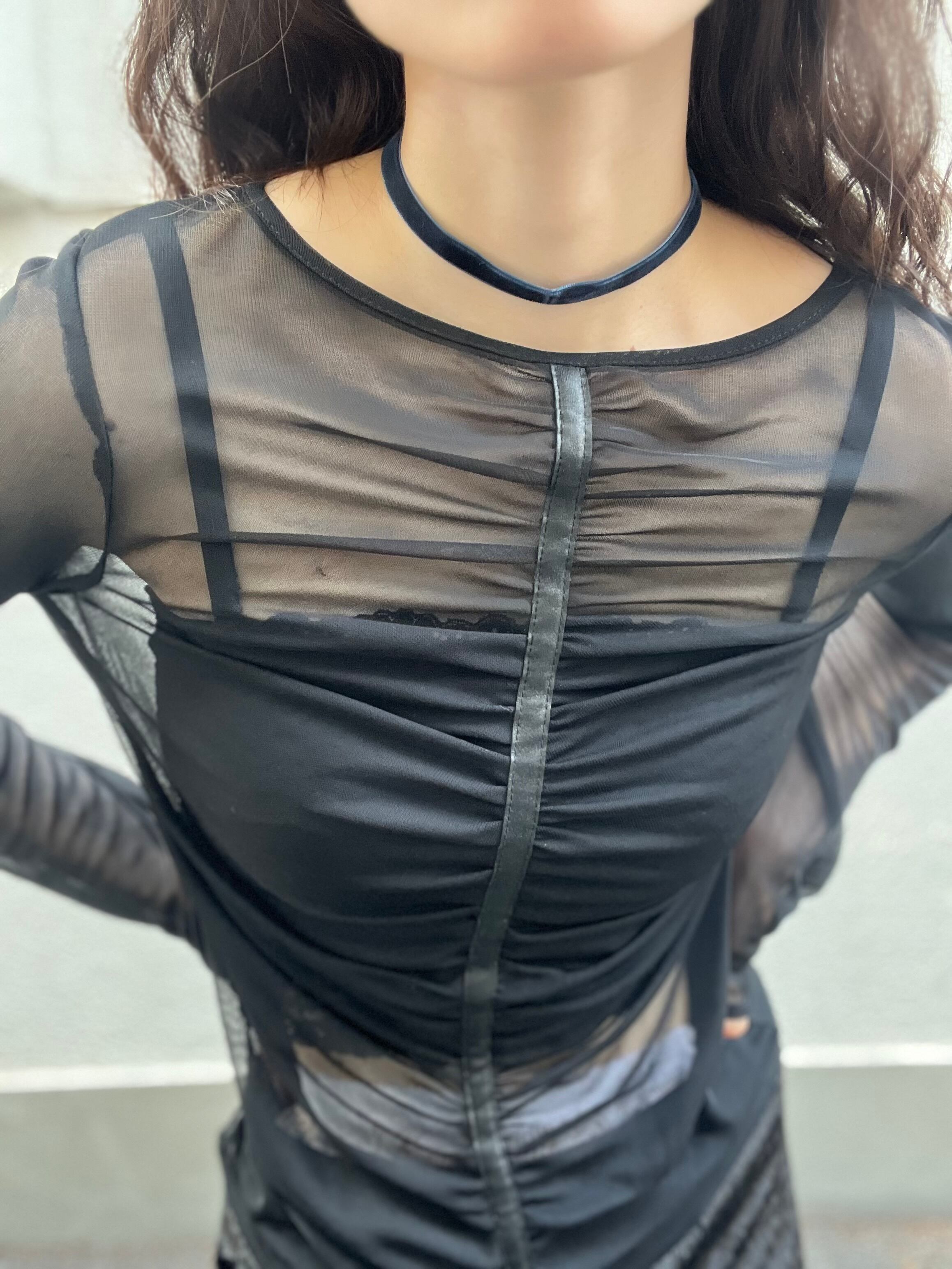 インナー次第で表情を変える透け感は、レイヤードを楽しむ秋にぴったりです。