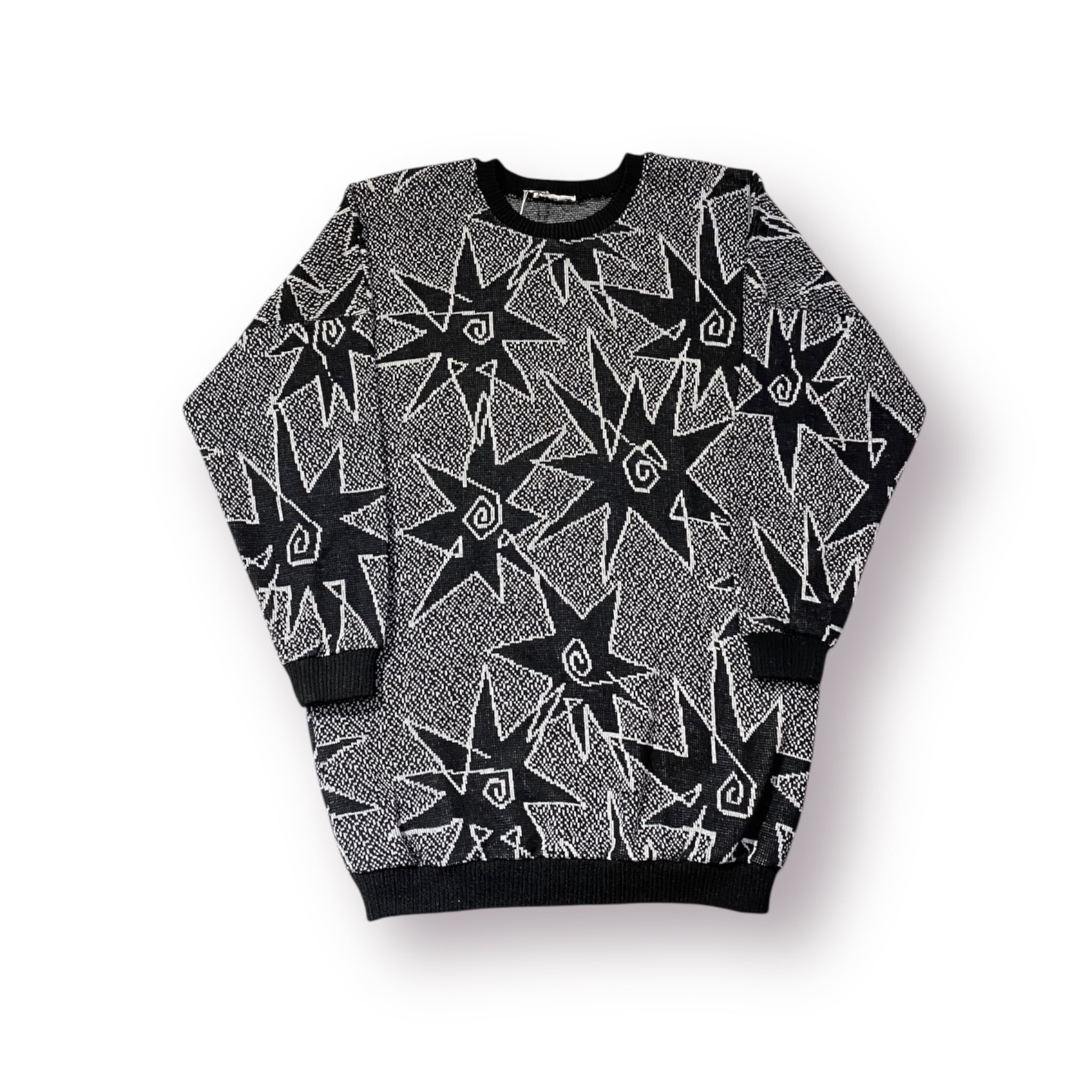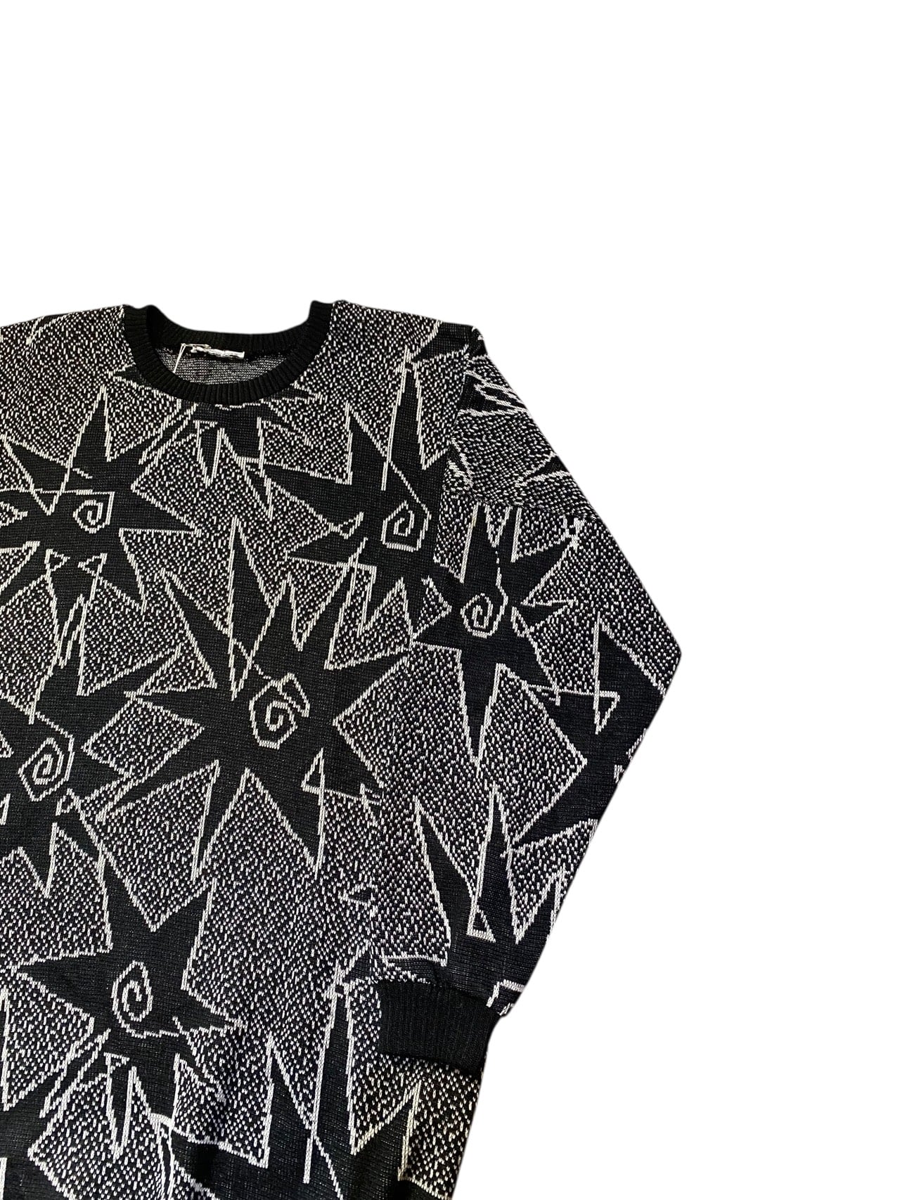 白黒のコントラストで星を全体に散らした総柄ニット。