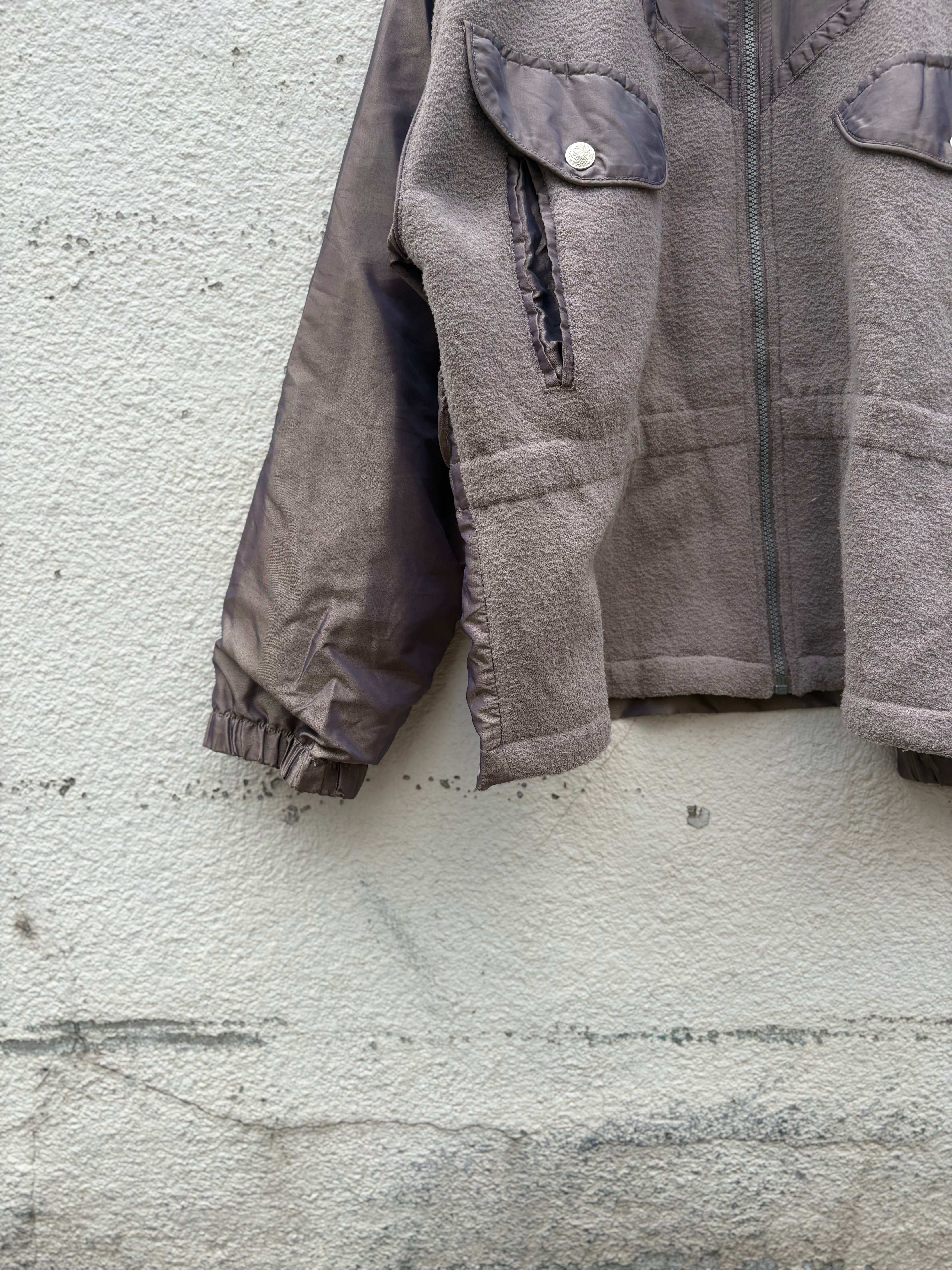 シャカシャカじゃない、ヌルッとした艶。切り替えたフリースは毛足短め、密度高めでちゃんと暖かい、、、