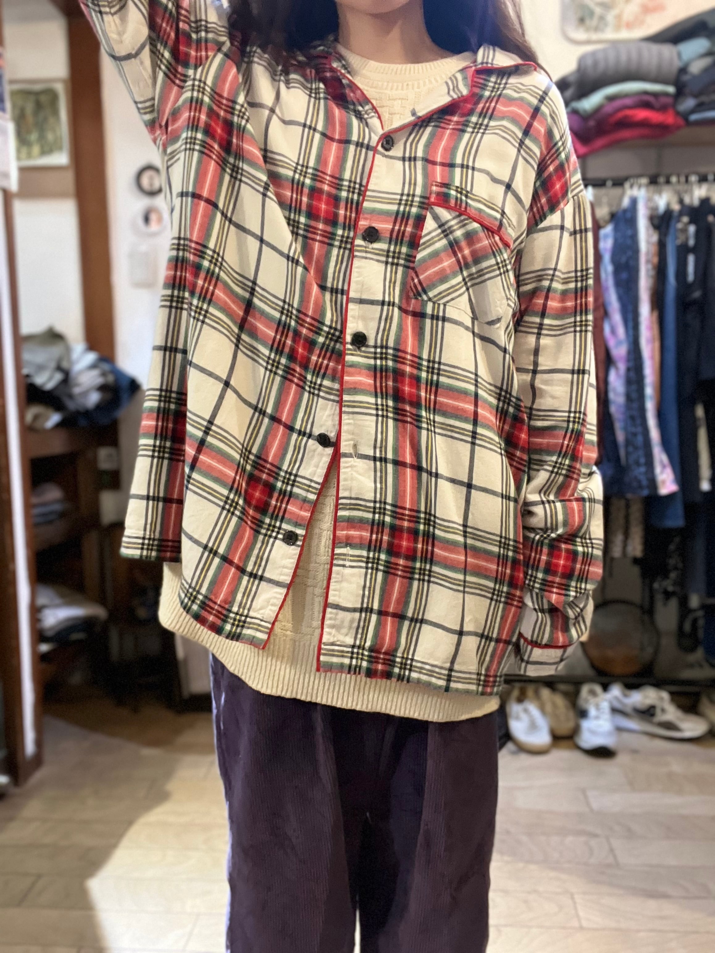 ざっくり羽織れるネル地っぽいパジャマシャツ。