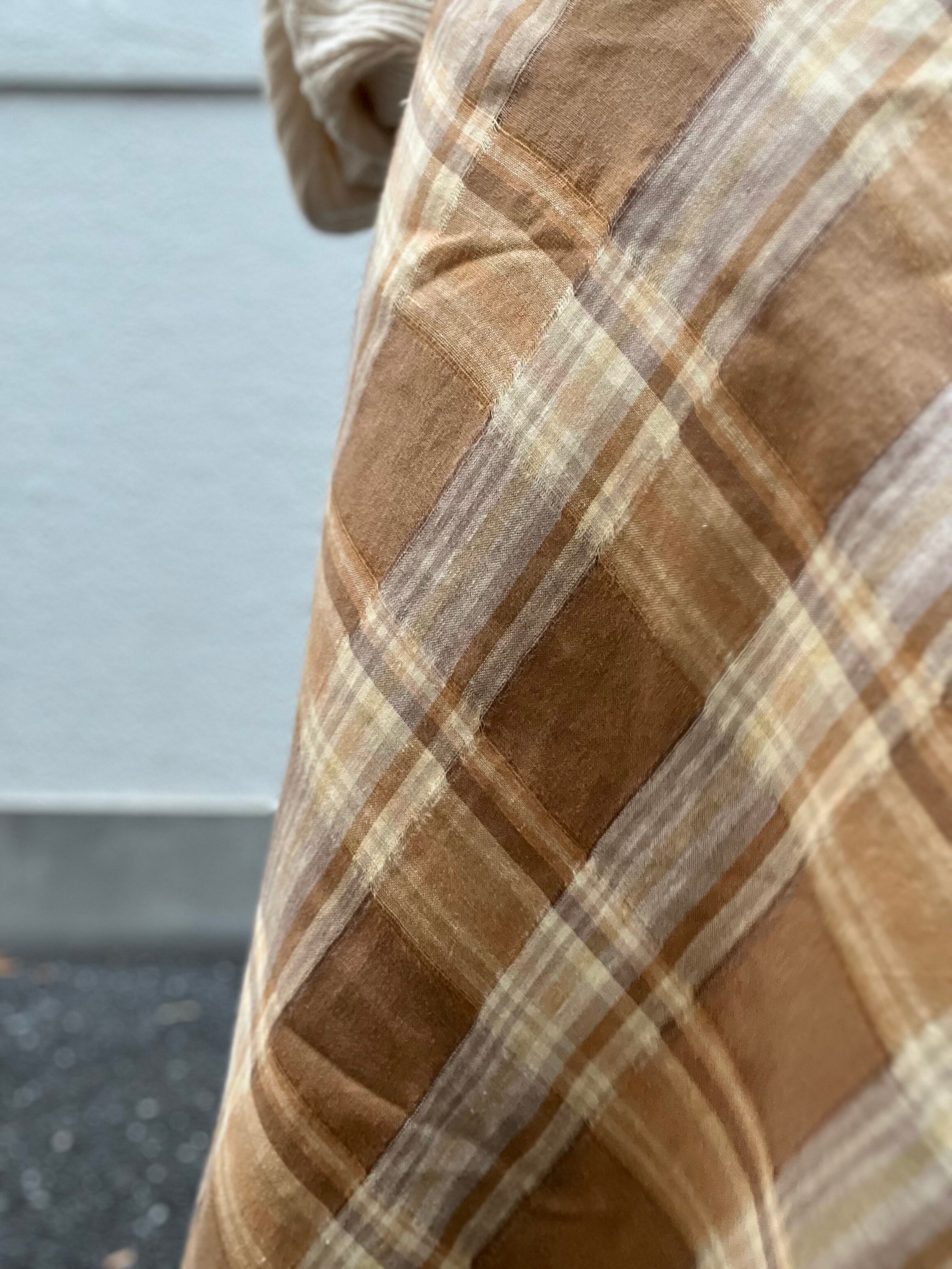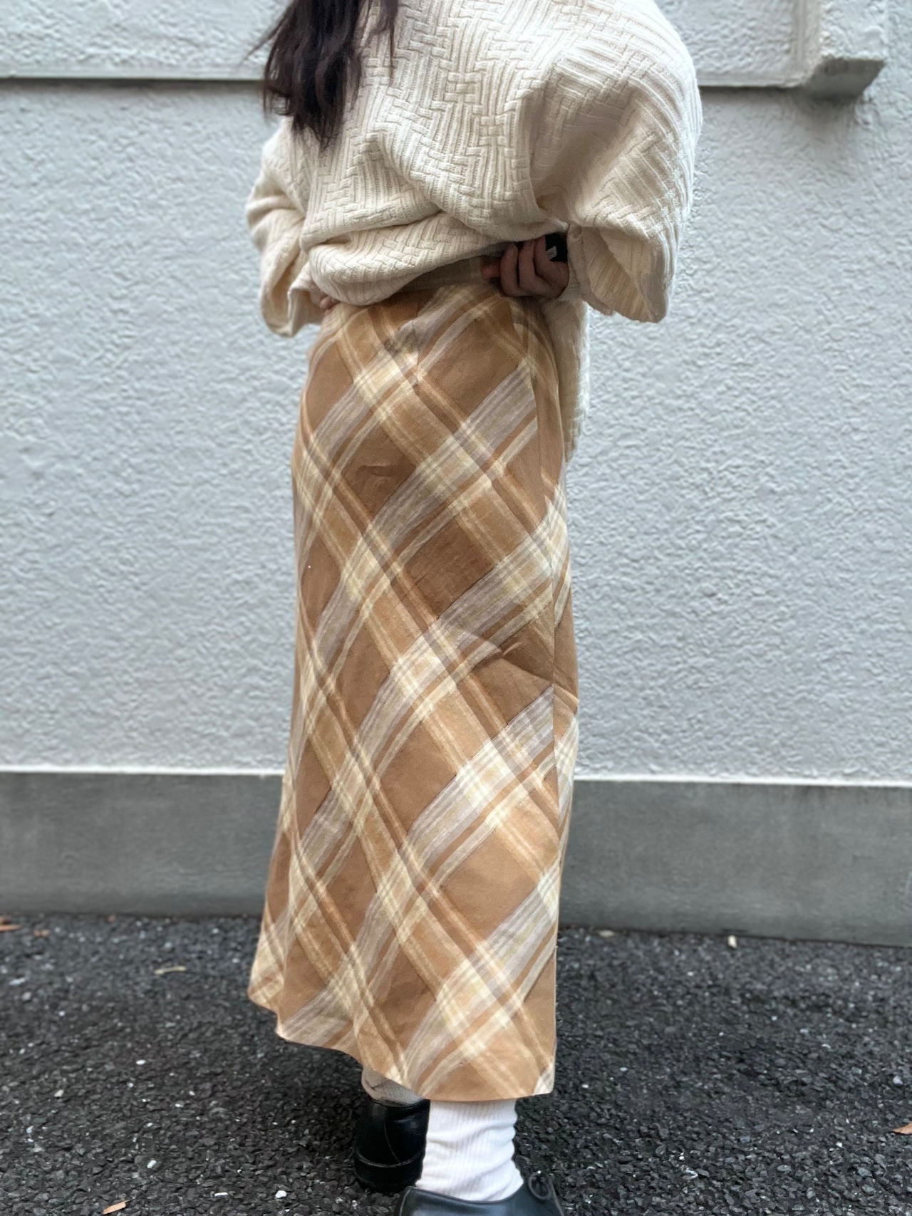 茶とベージュがゆるく混ざって、境界線がふわっとしてる優しいチェック柄がいいですね。