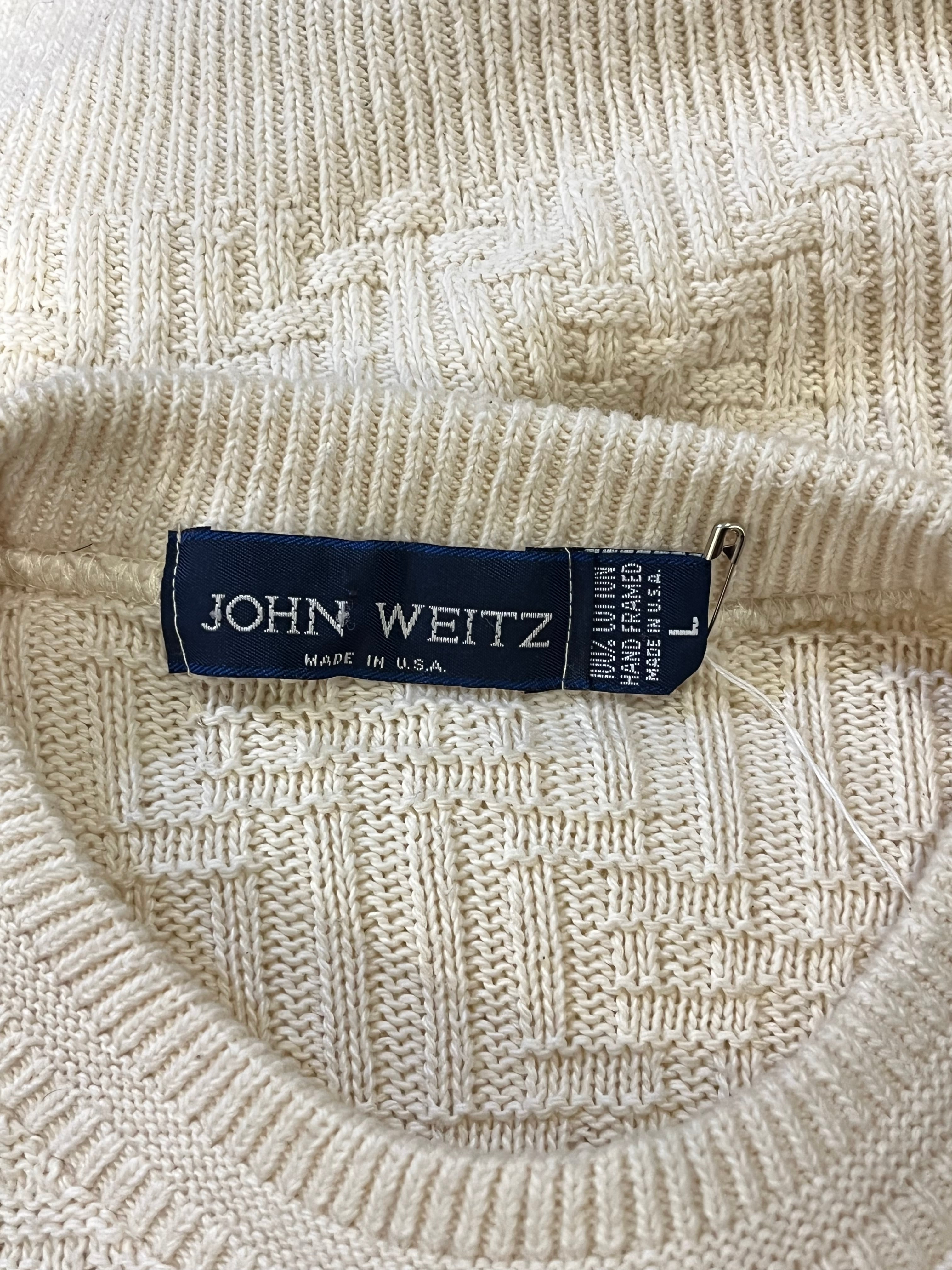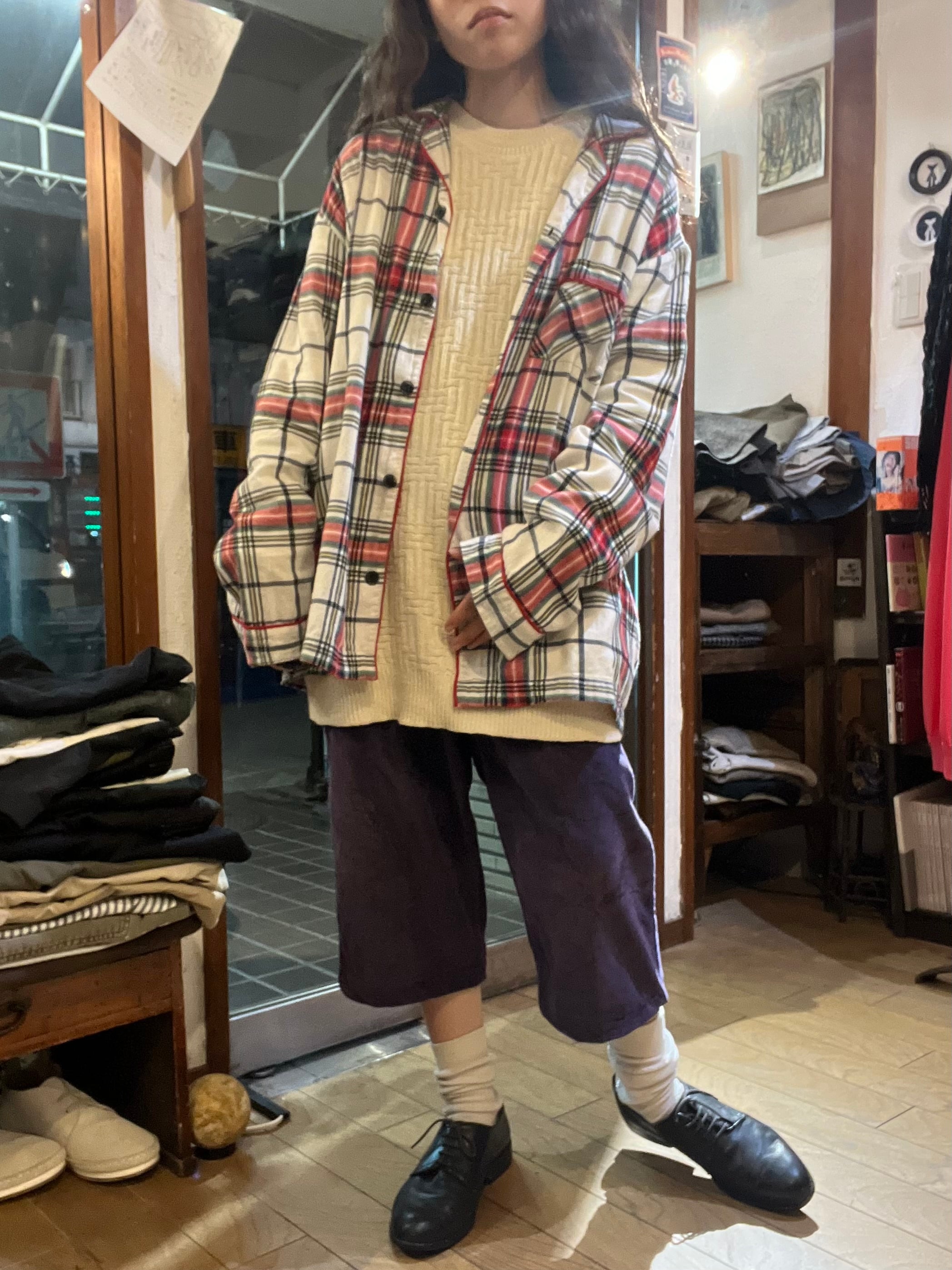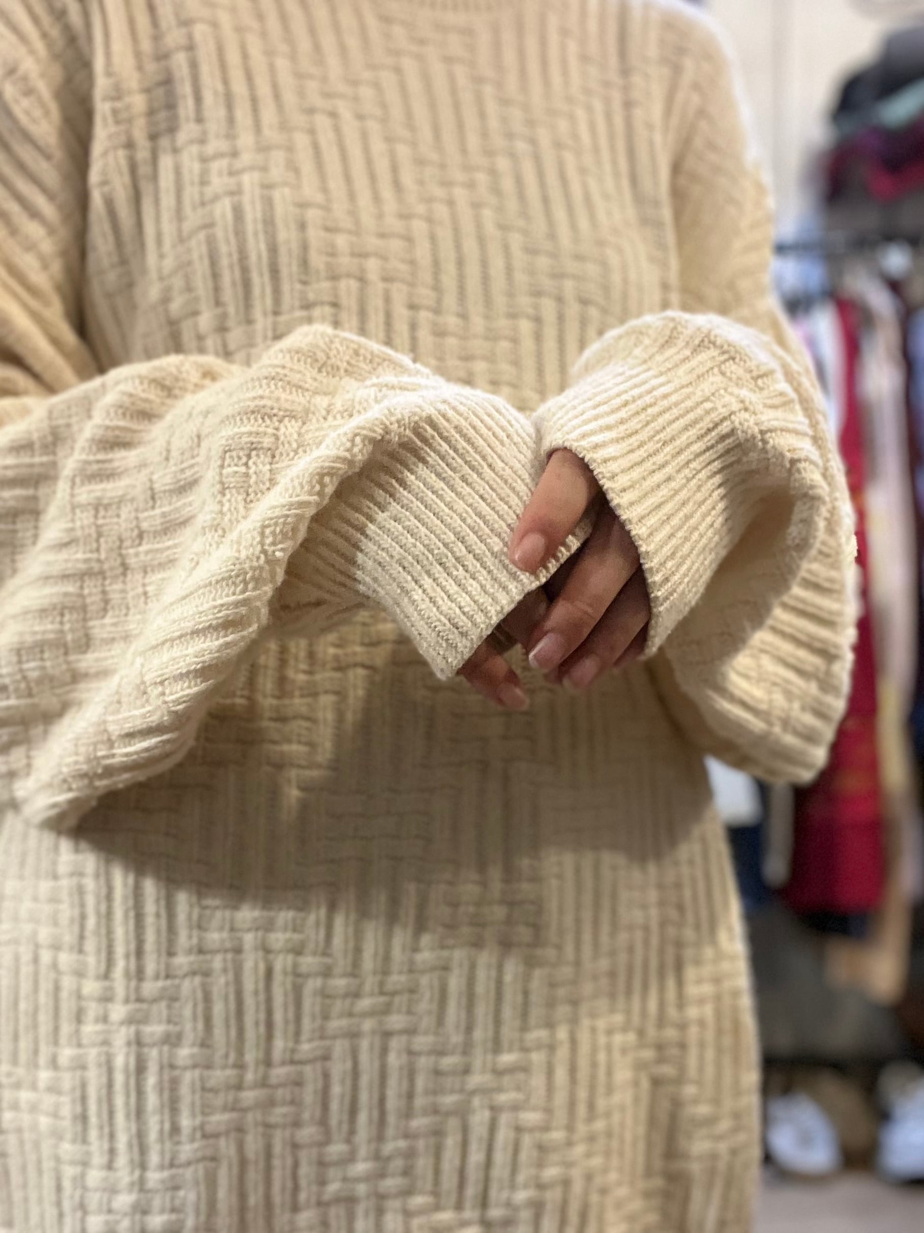 柔らかなアイボリーが肌に馴染み。季節の端境期にも一枚でサマになる。性別問わずオススメです。