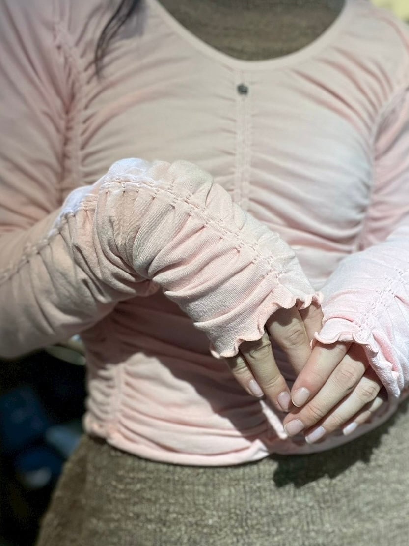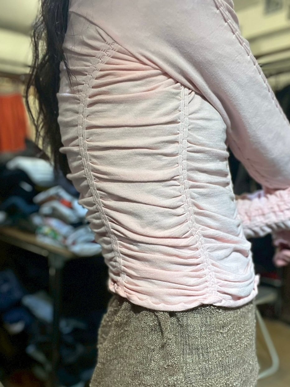 タイトに見えますが、伸縮性があるので中にも仕込める万能選手。