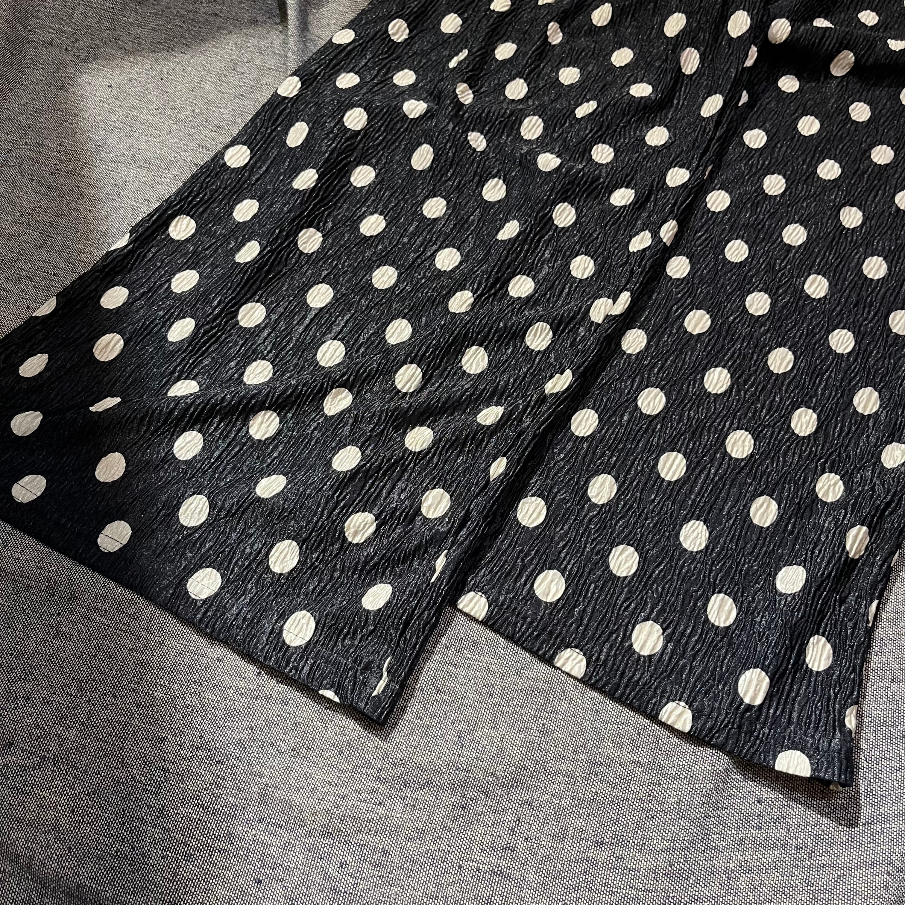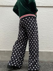 モノトーンだけど、遊び心は忘れない絶妙なバランス。ゆるっとワイドなシルエットが動くたびにゆらりと。