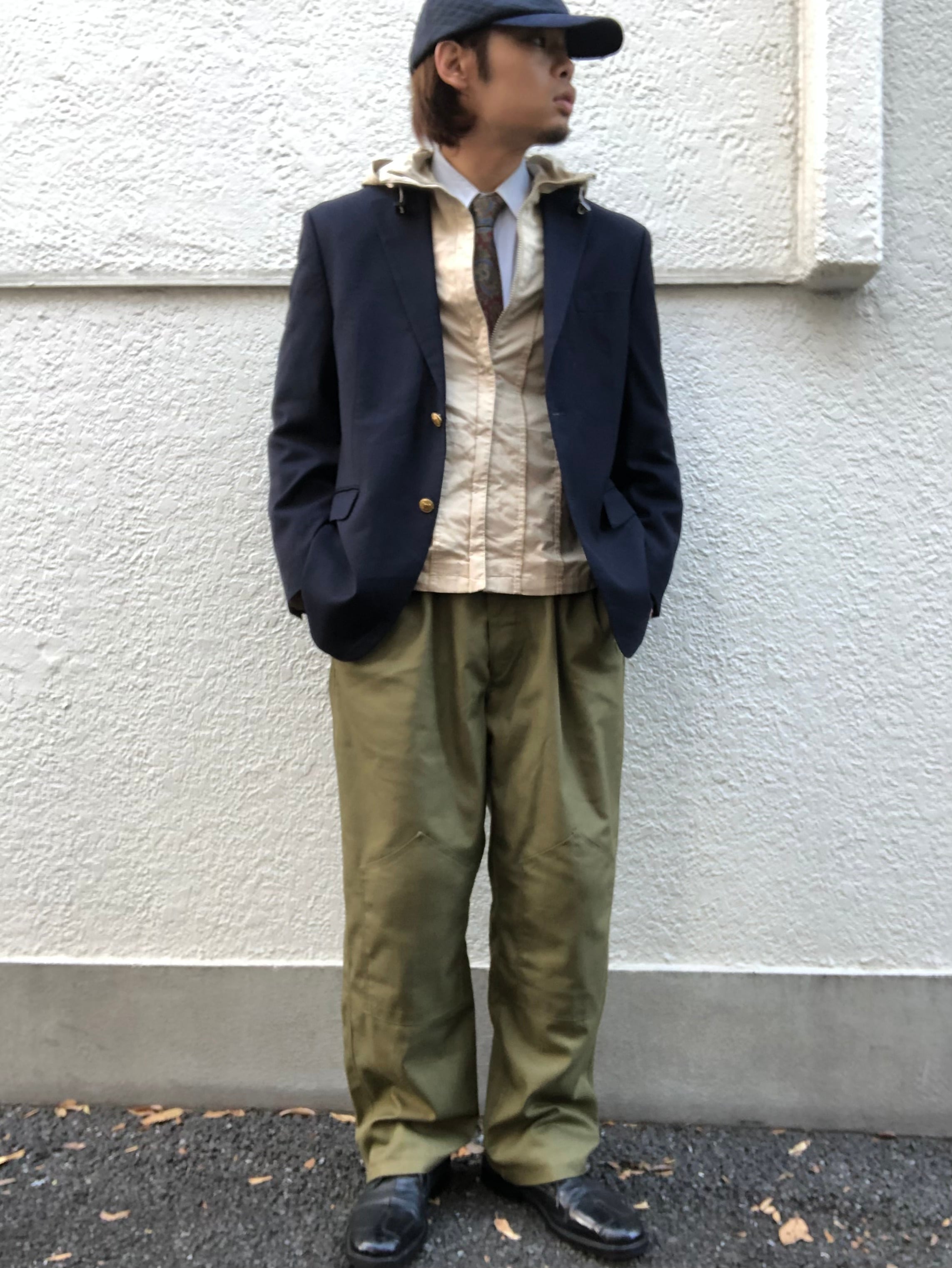 万能な紺ブレ。知らなきゃ見逃す系ですね。