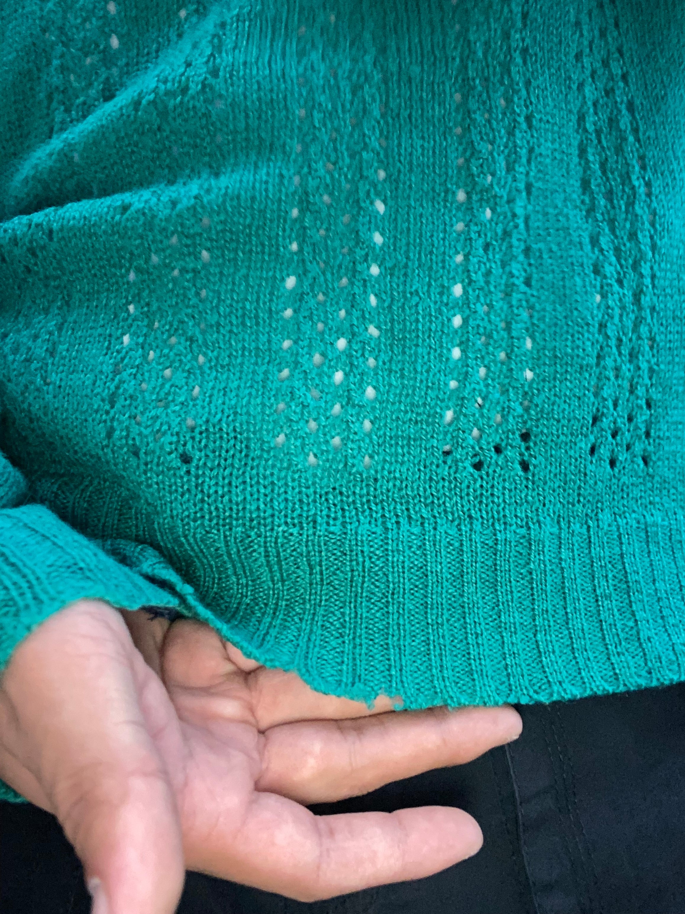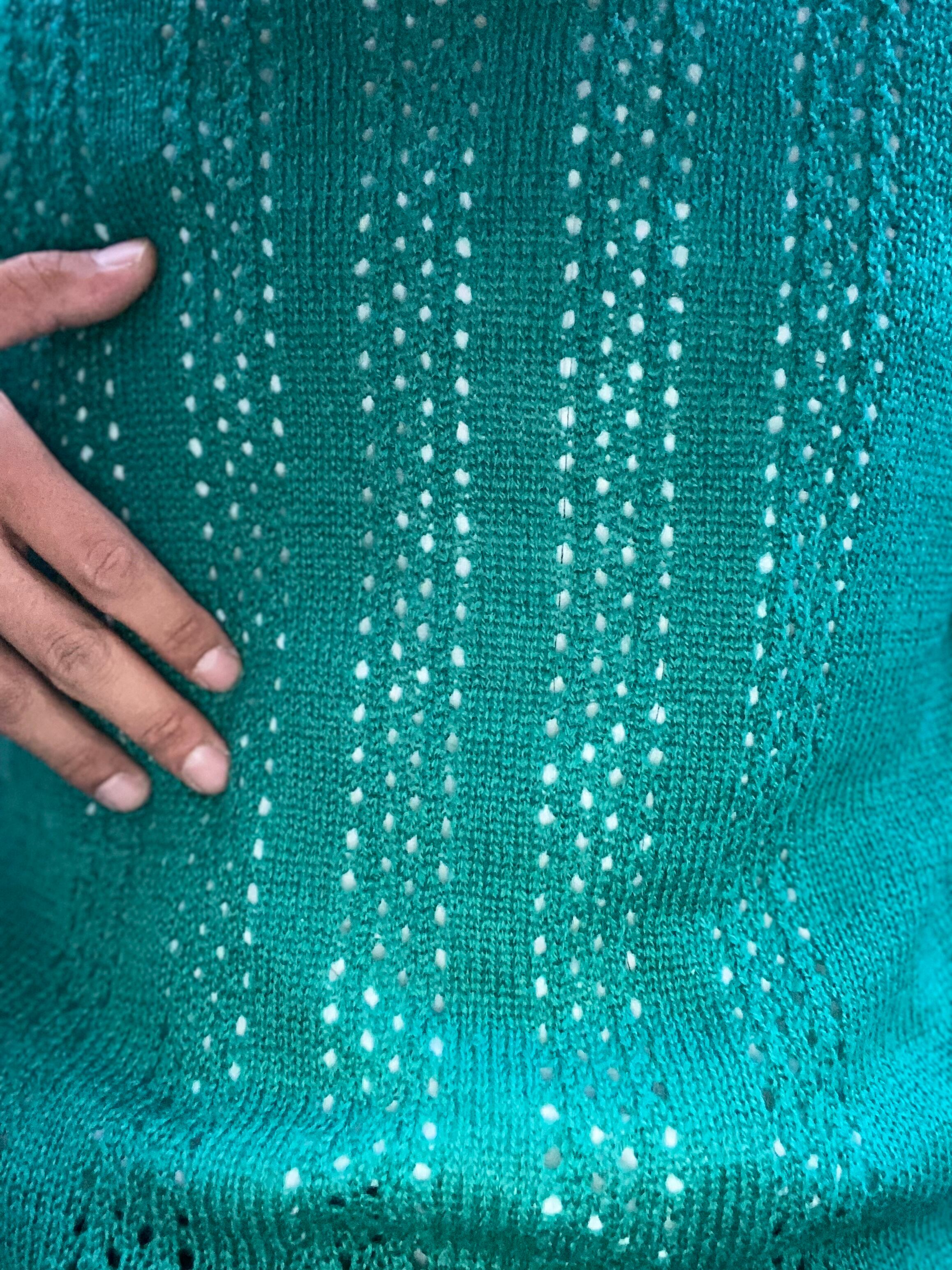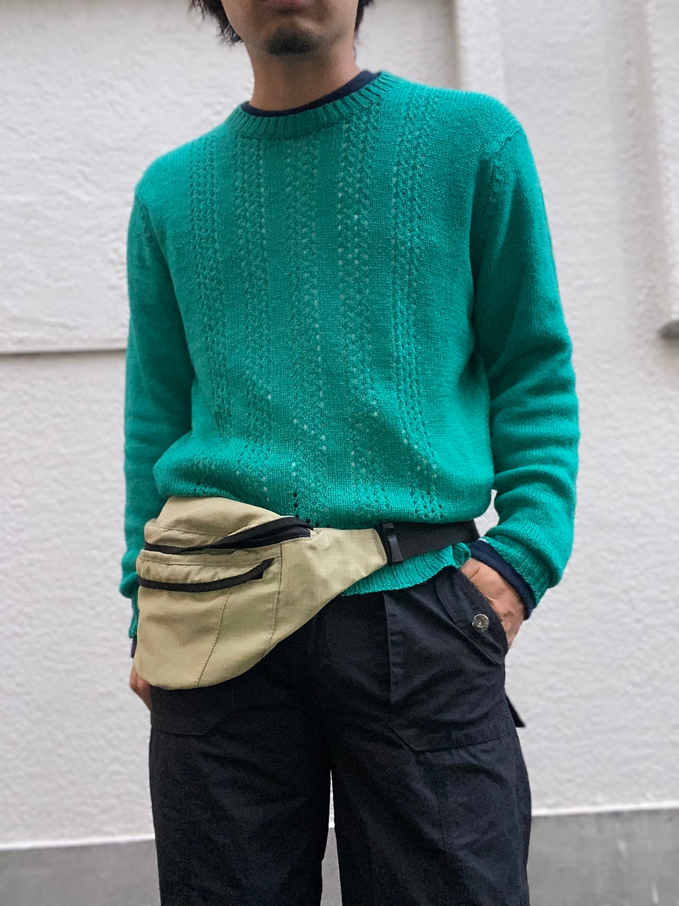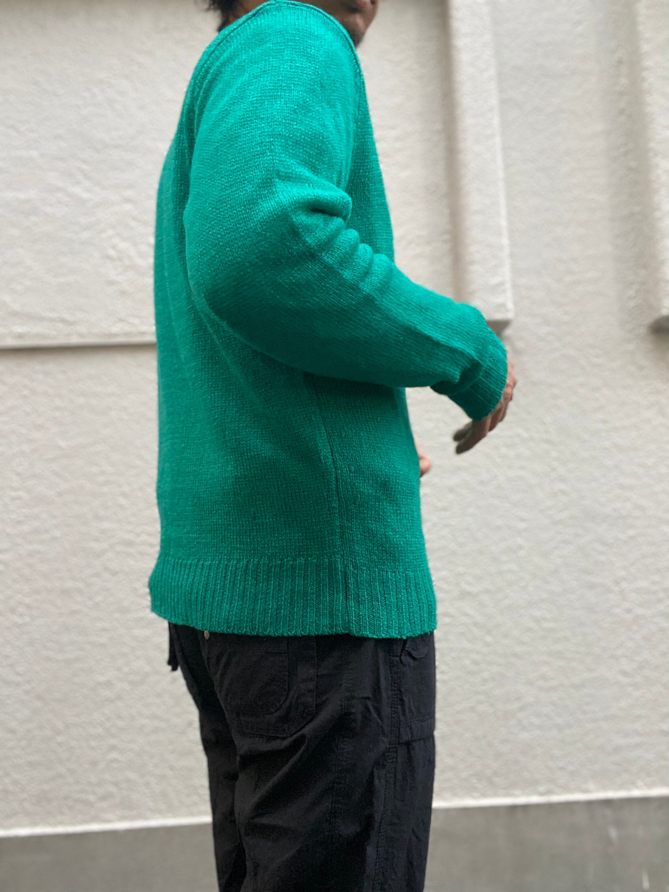 エメラルドグリーンのウールニット。