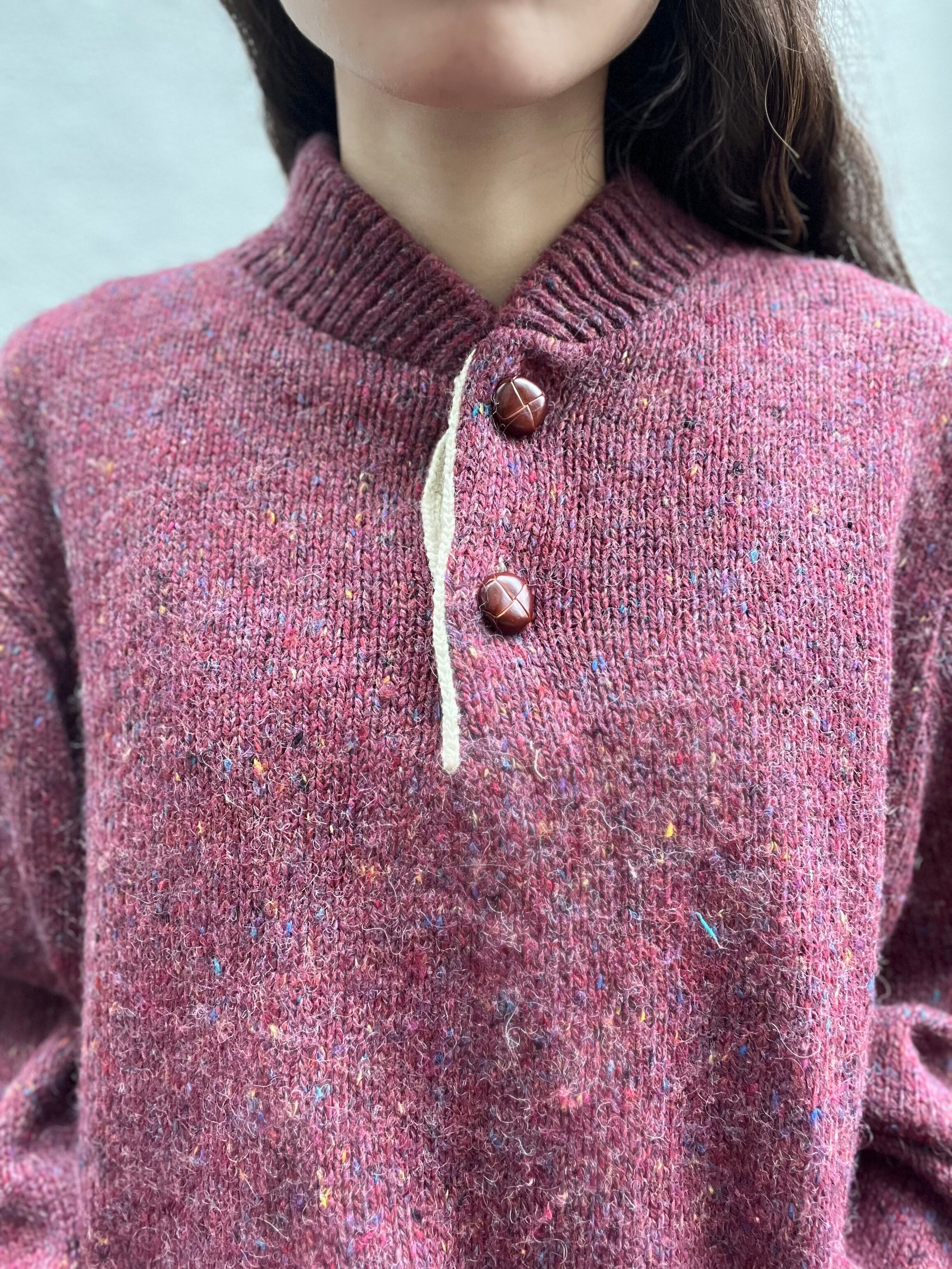 程よく厚みのあるウールで、ふわっとしたラフなシルエットはきやすさ十分です。コートなどの下に一枚忍ばせて出かけたいですね。