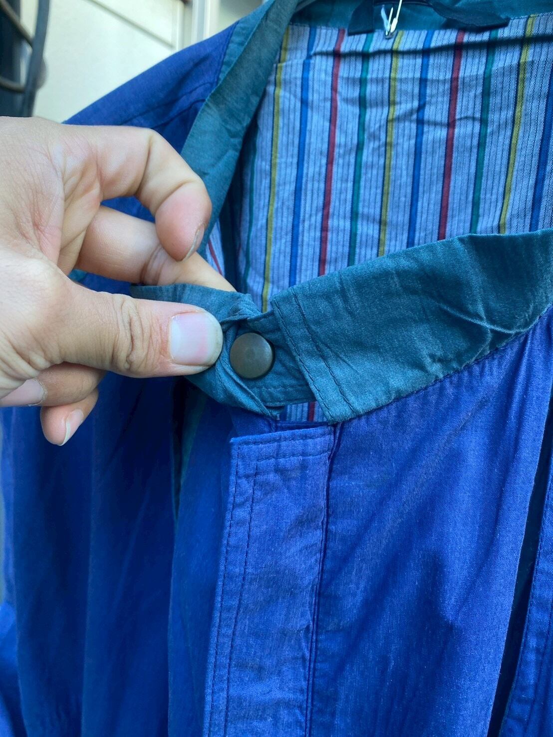 首の隠しボタンを閉めるたびに、設計した人の癖が伝わってきます。ファッション向けだし実用的なデザインですね。