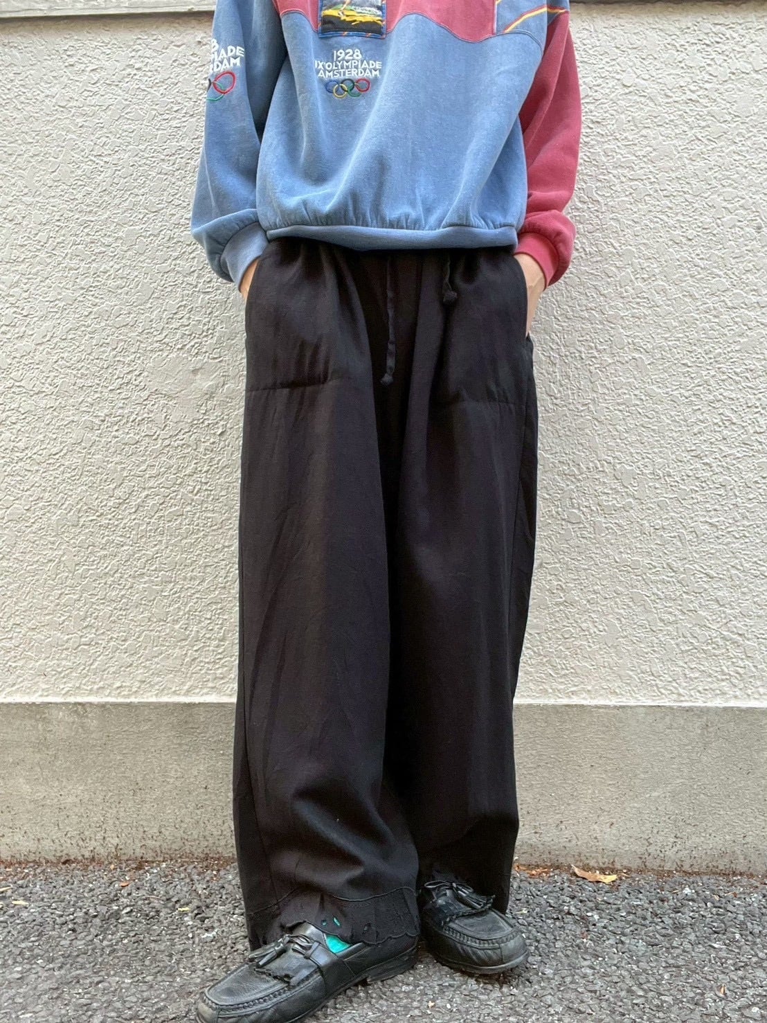 シルエットはルーズストレート。素材ならではの揺れがなんとなく心地よくて、気づくと脚ばかり見てしまいます。