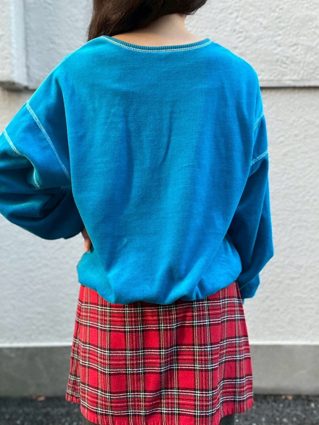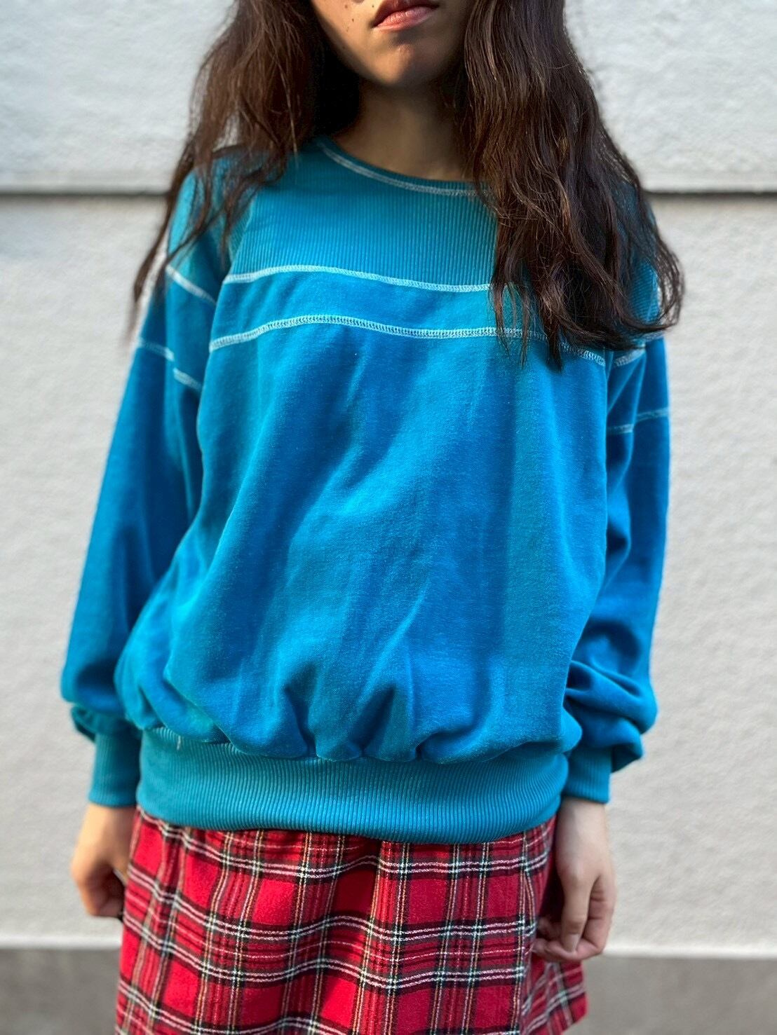 ふかふかな風合いが推し、寒色のベロアカットソー。