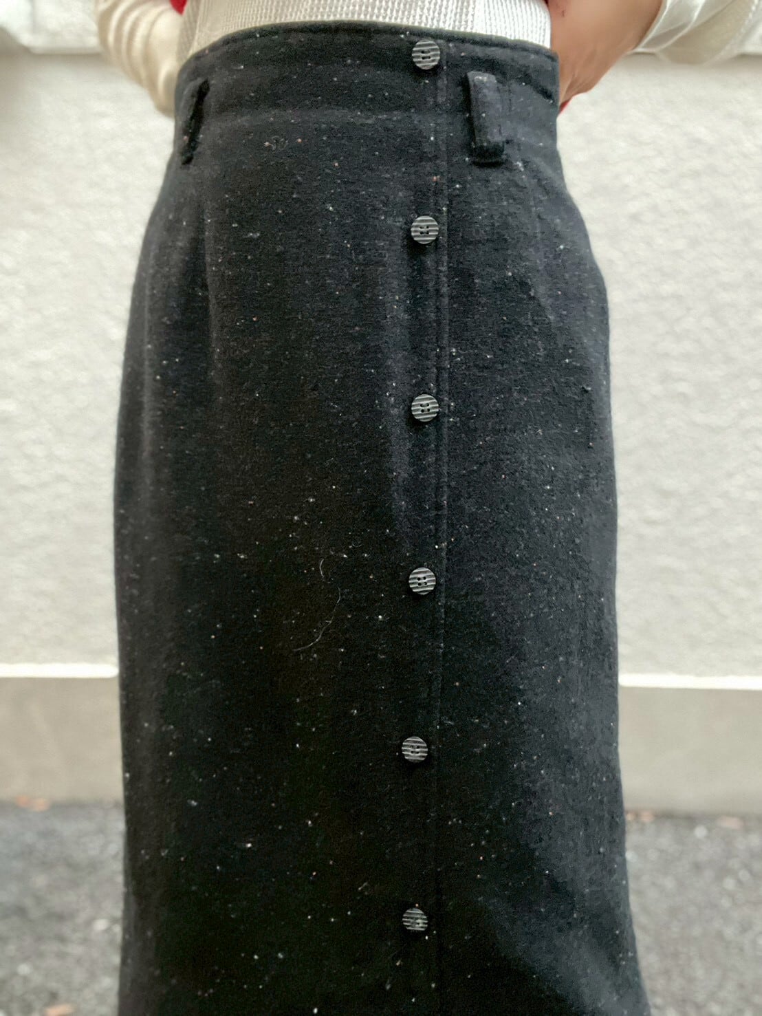 裾の開き具合が絶妙で、チラ見えする靴下でワンアクセント。