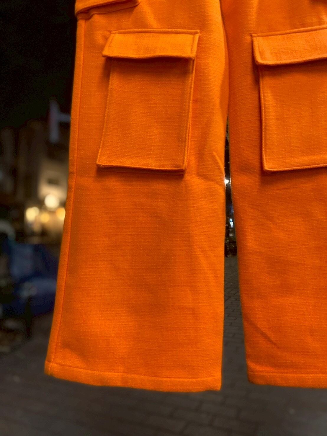 大容量なポケットデザインに加え、何故か裾にかけて広がるフレア仕様。