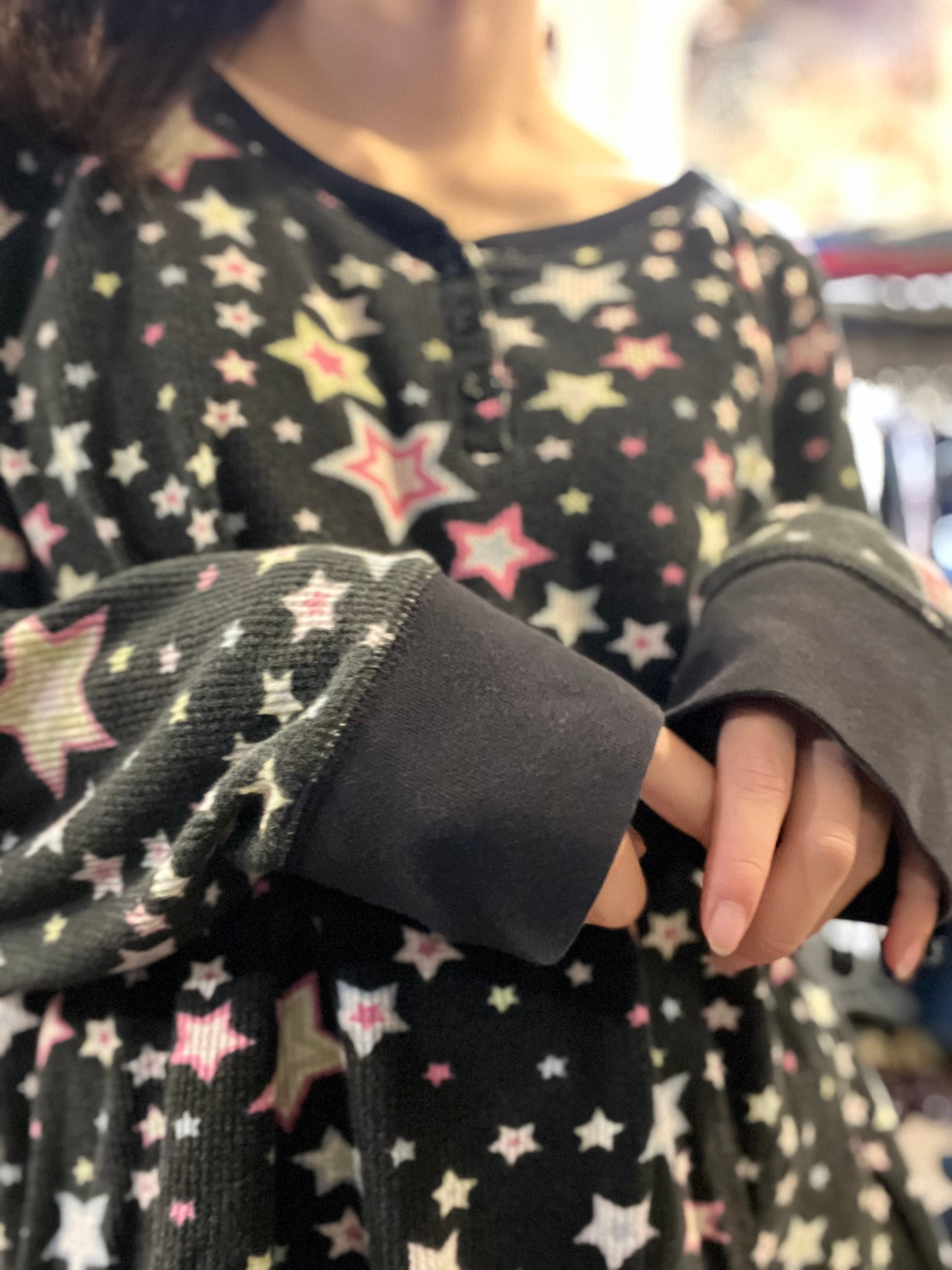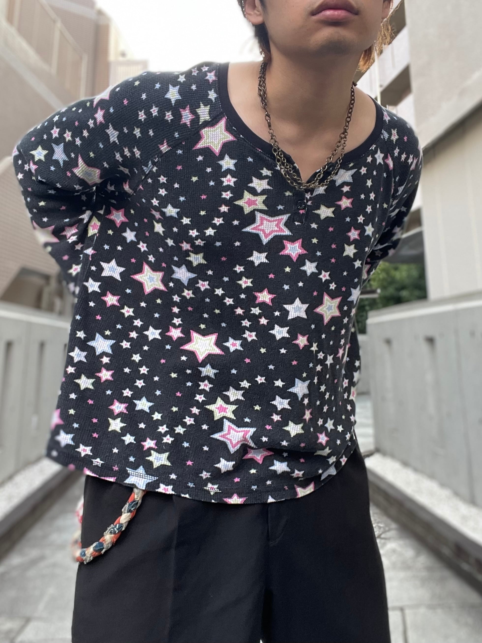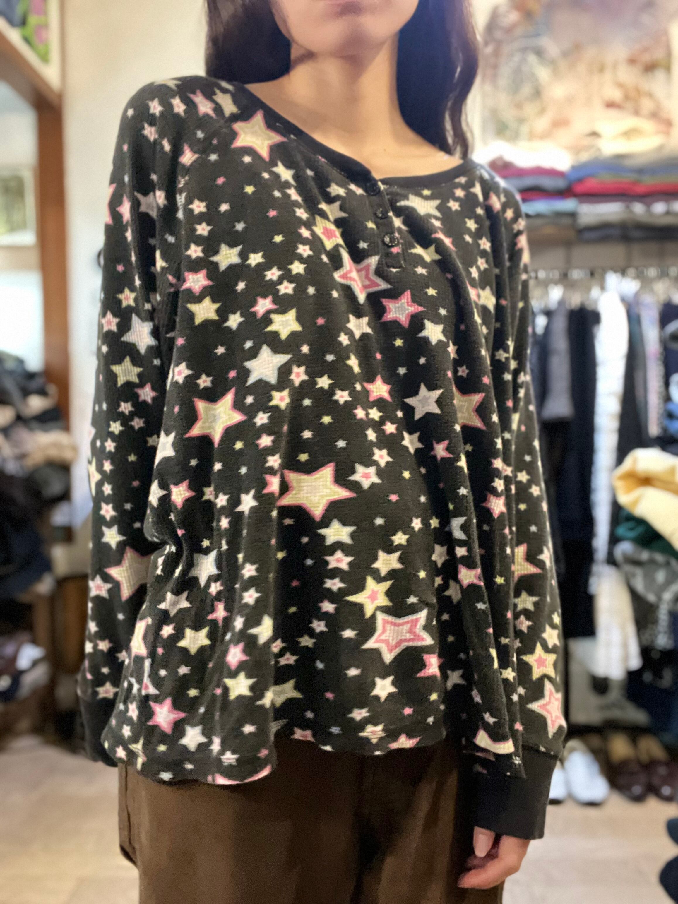 大小さまざまな星たちが散りばめられたサーマルカットソー。