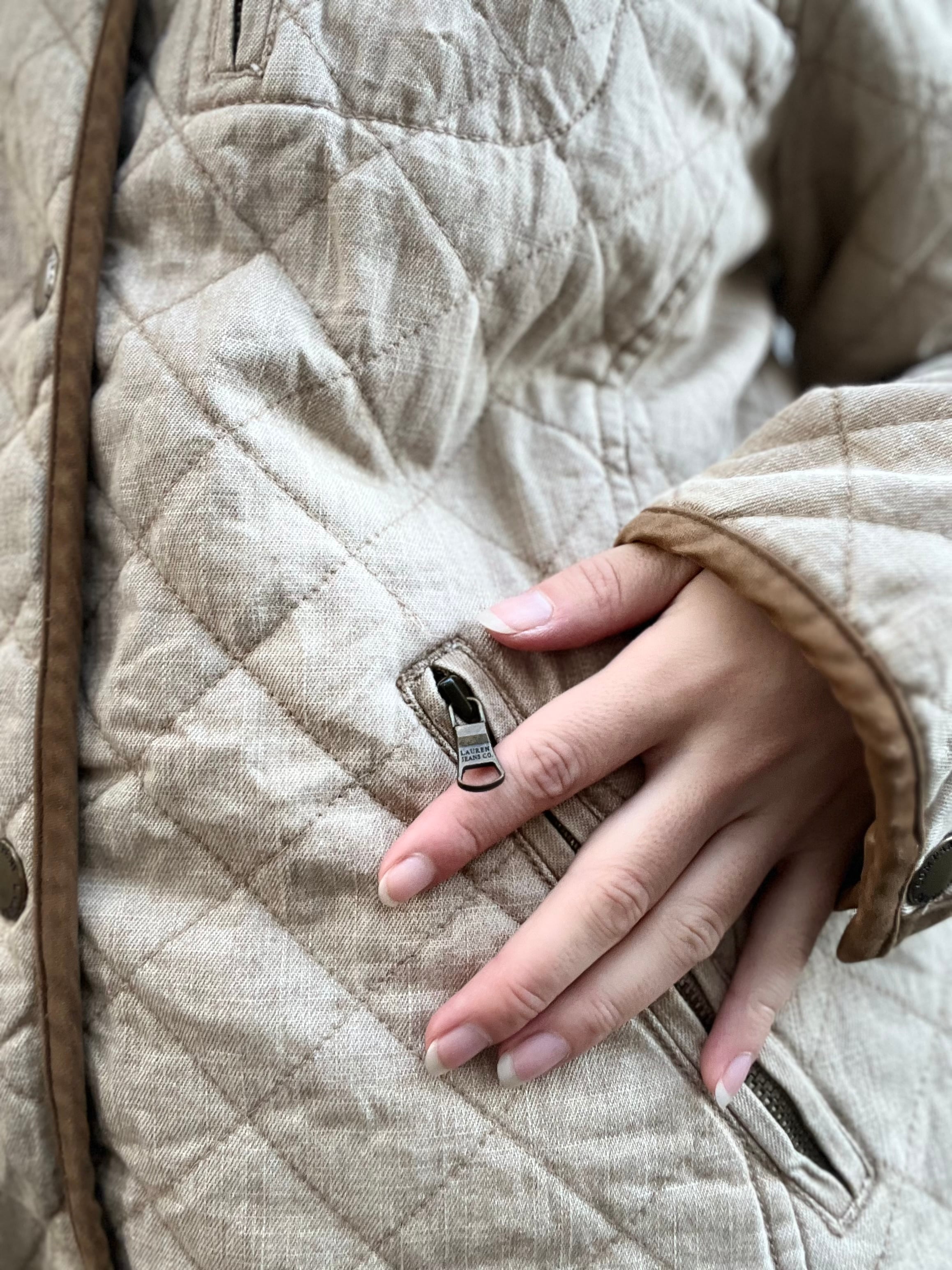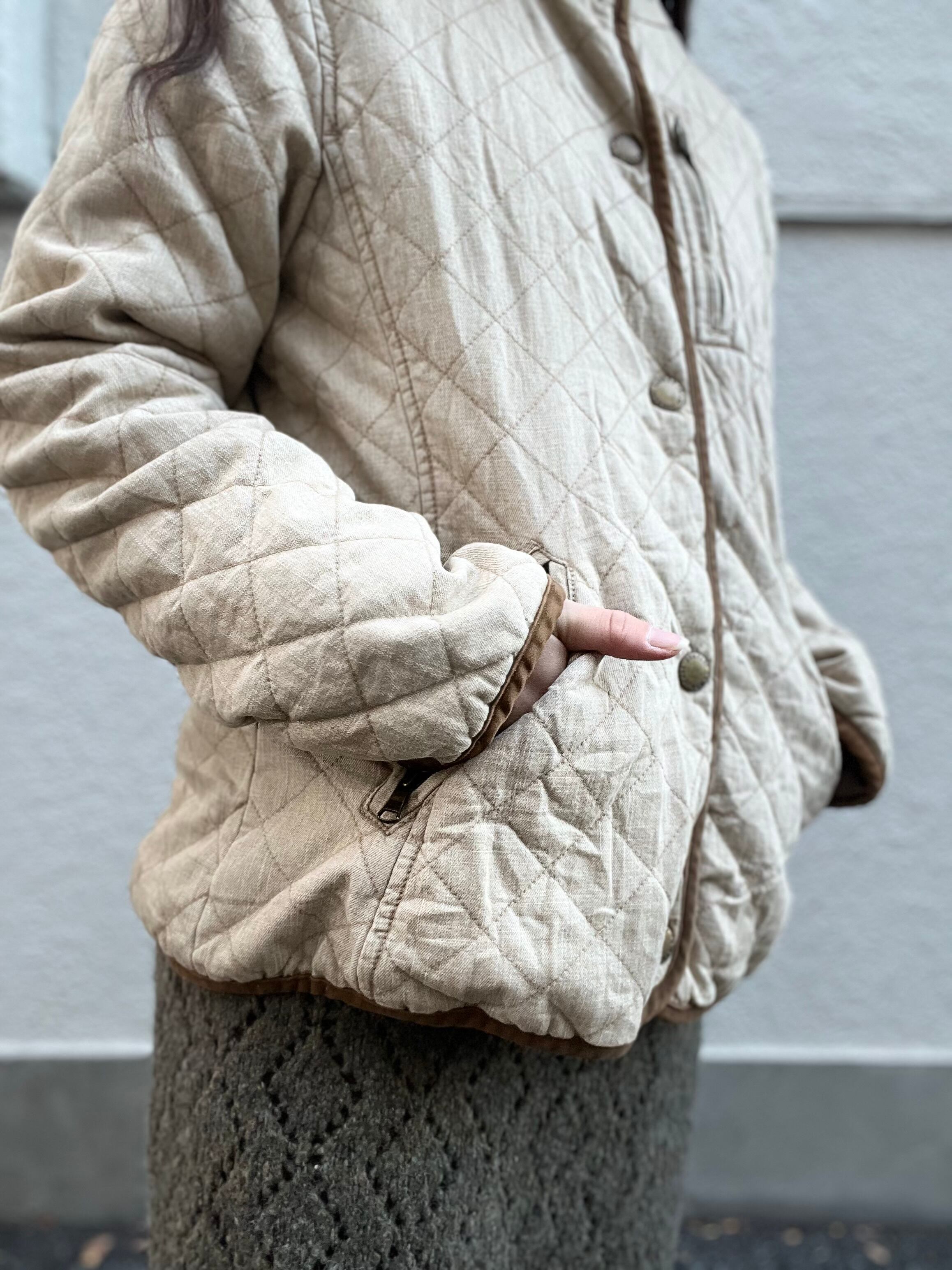 しっかりとしたキルティングに、柔らかなベージュの色味。