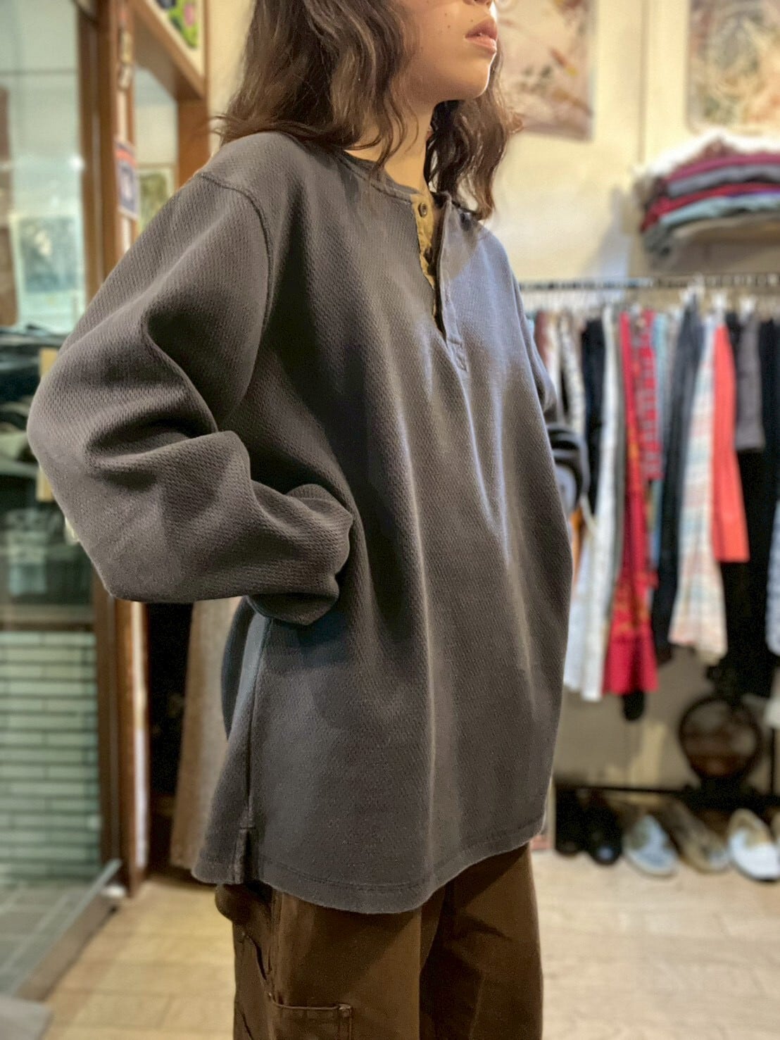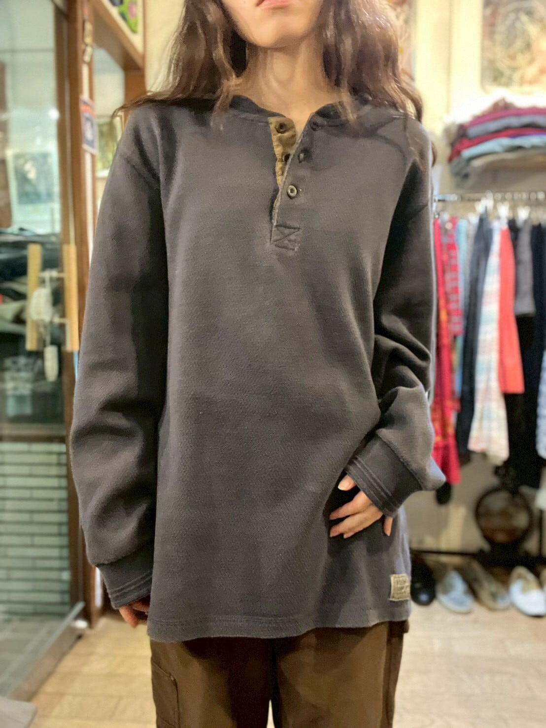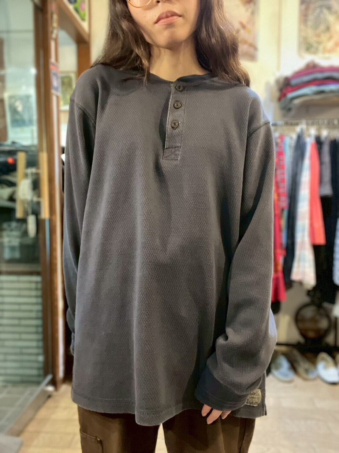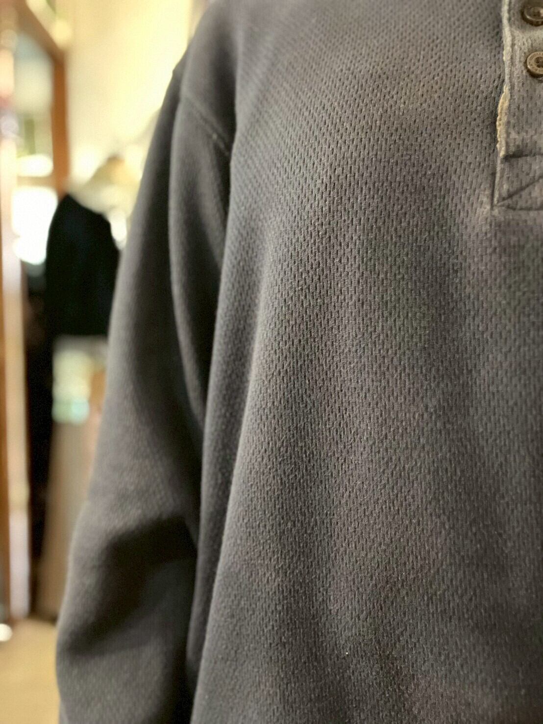 首元部分の切り替え、程よい色落ちがかゆいところに手が届くインナーです。