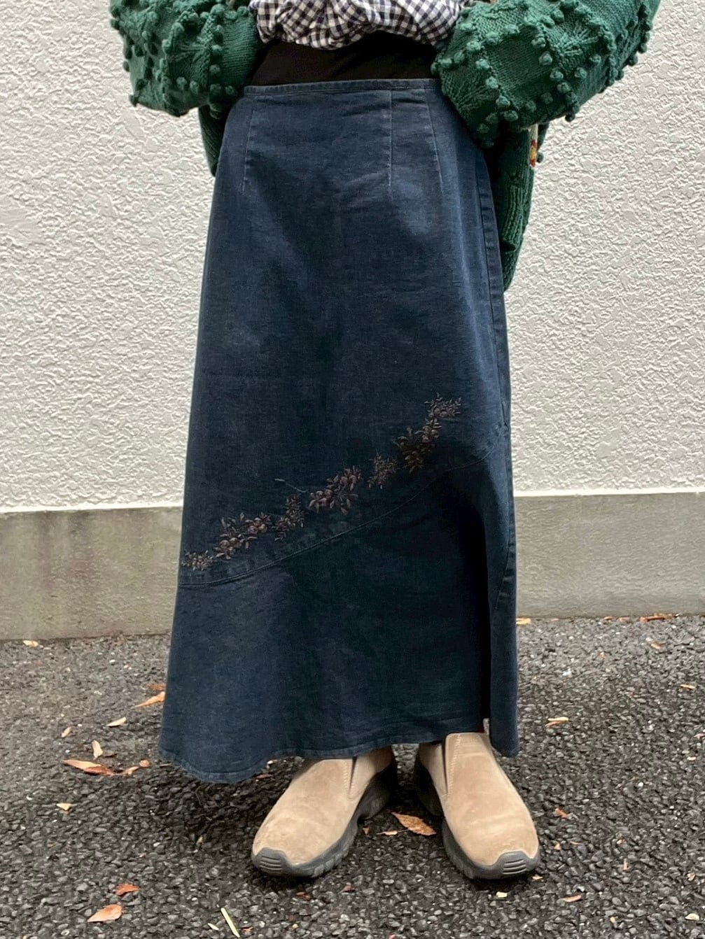 ほのかに広がるシルエットが心地よいデニムスカート。