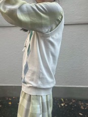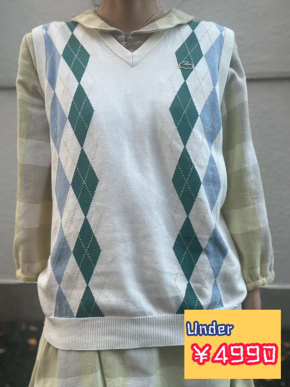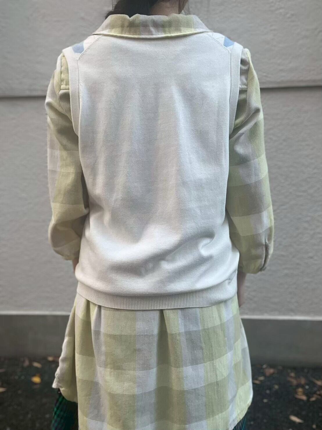 スクールっぽさと古着らしいゆるさのバランスがちょうどいい一着ですね。レイヤードが楽しくなる季節にオススメな一着です。