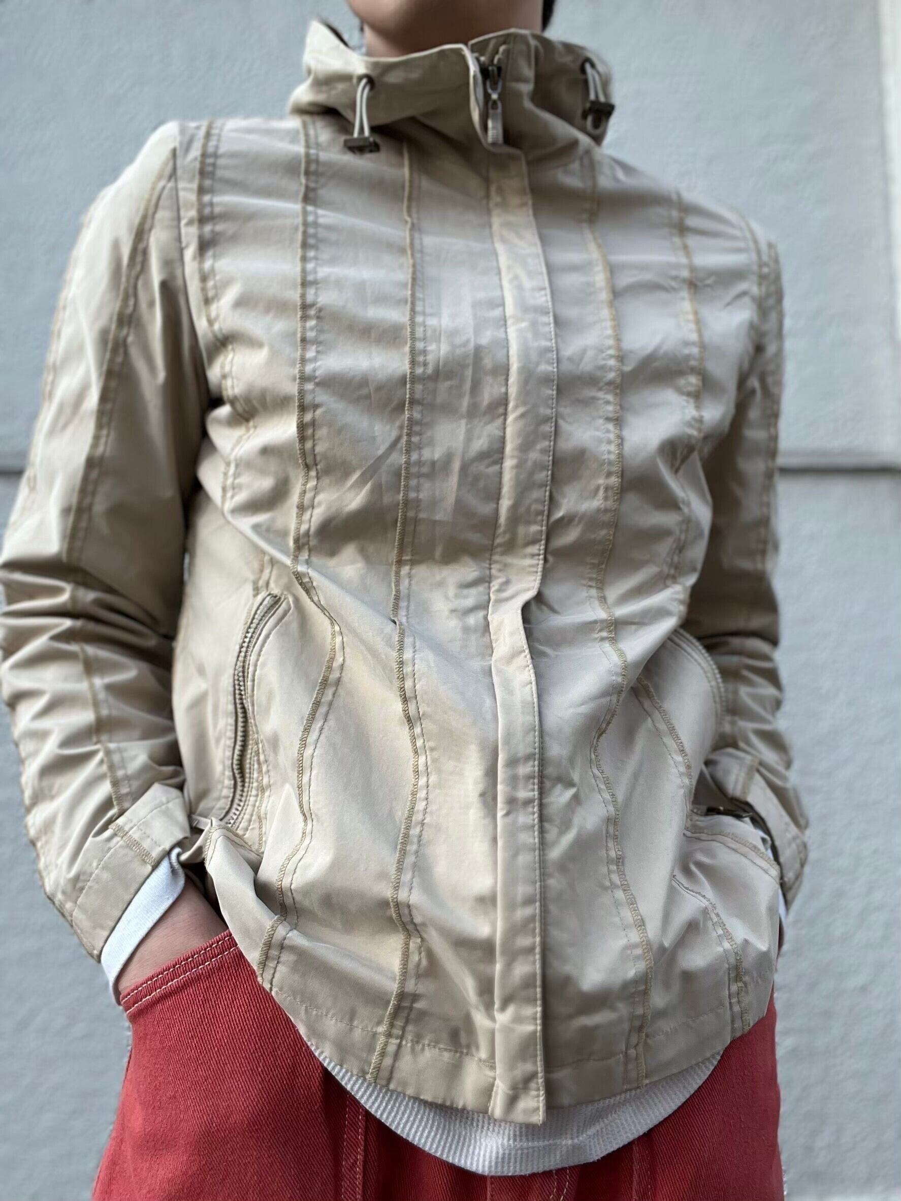 軽さよりも“質感”が前に出るタイプのナイロンジップパーカー。