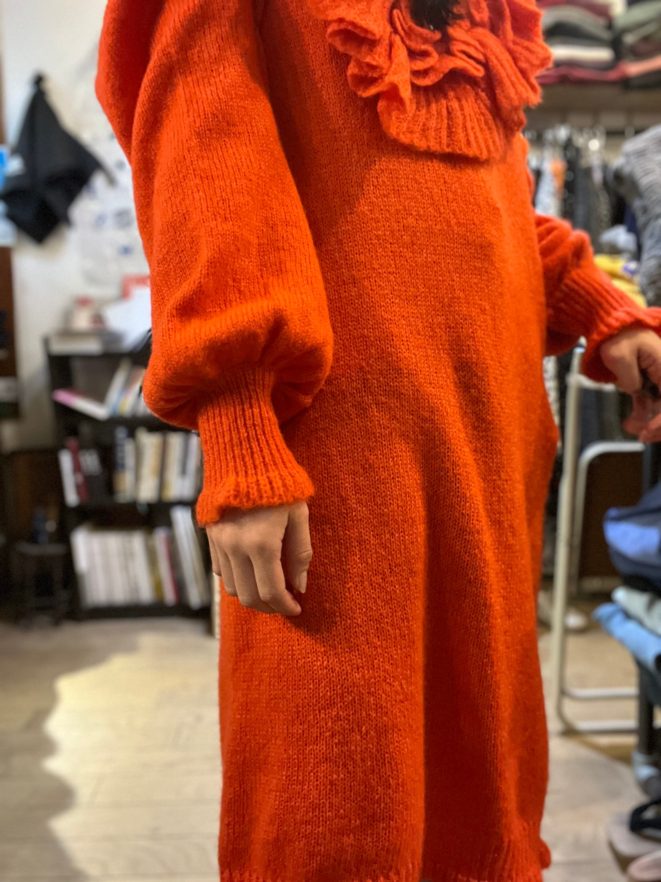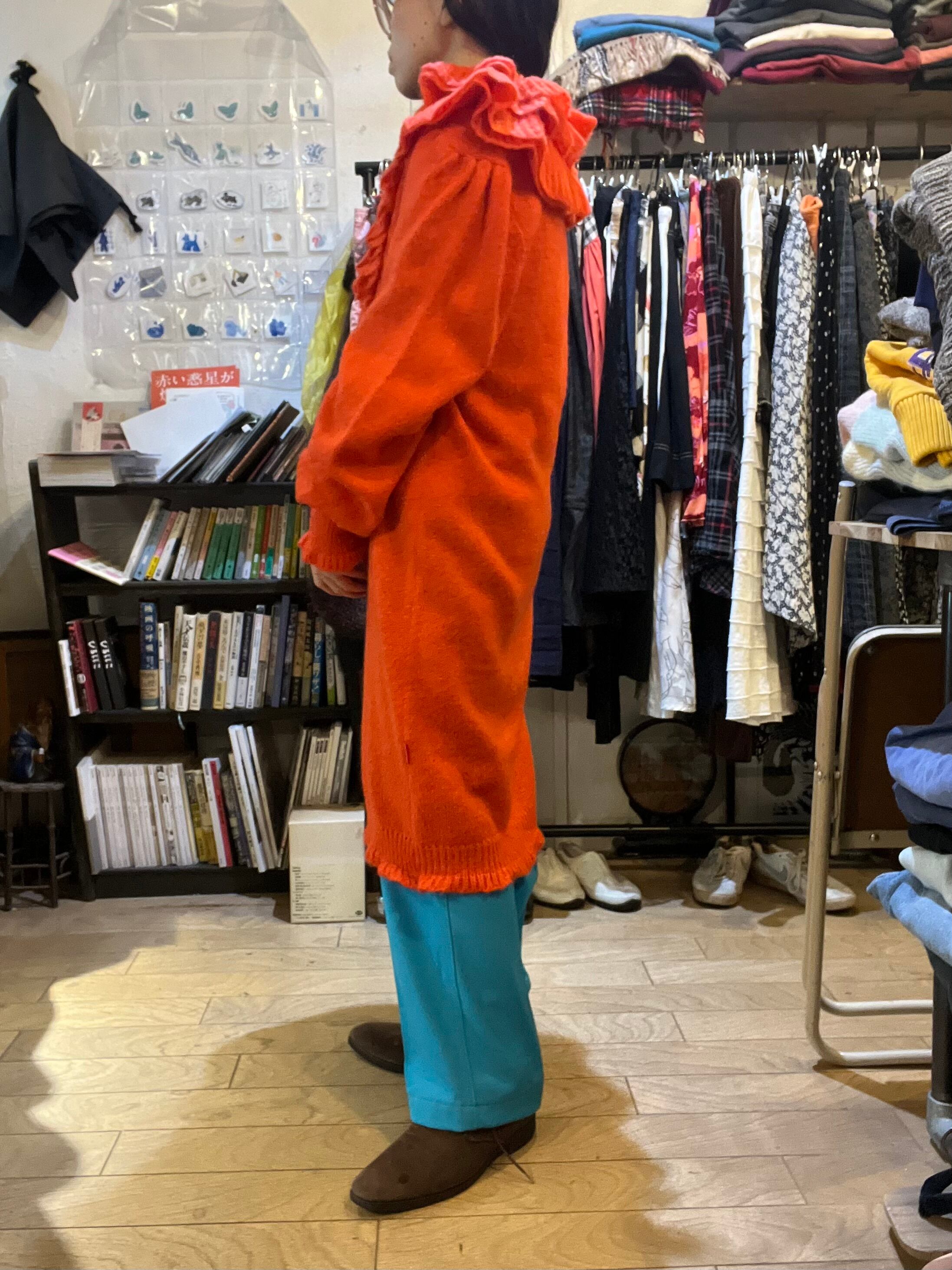 胸元のボリュームのあるデザインにオレンジのビビットカラー。この年代らしい奇抜なディテールですね。