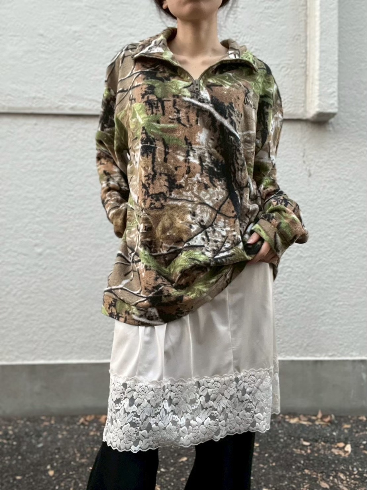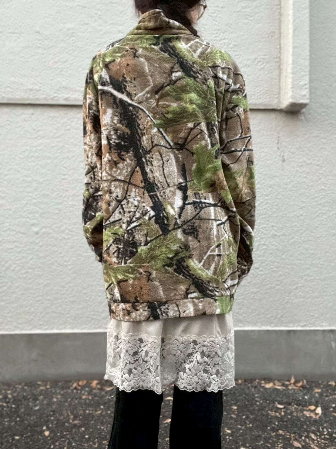 リアルツリー柄のフリースプルオーバー。