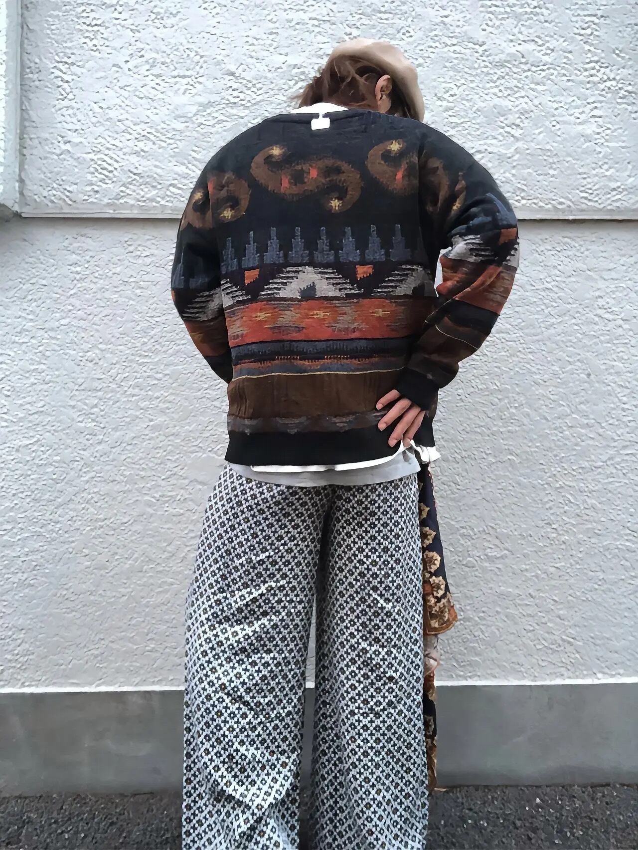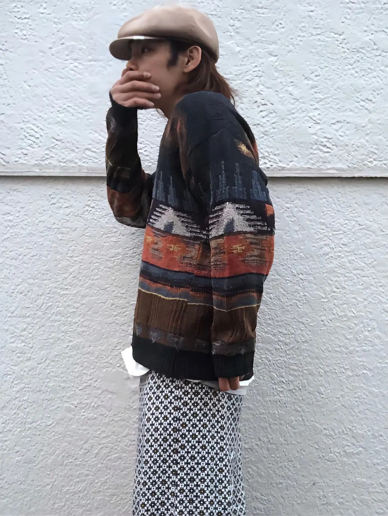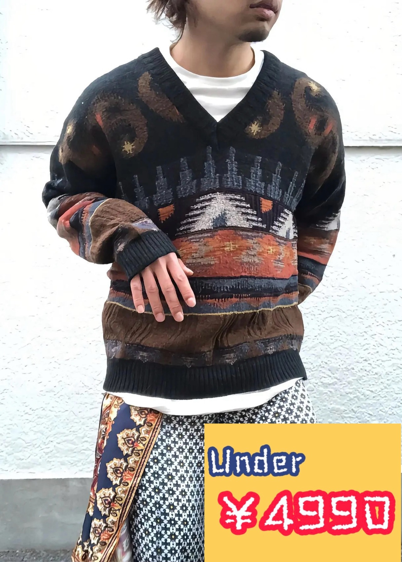 Vネックと民族調。中々離れた組み合わせですが、隣接しても不安は感じられません。