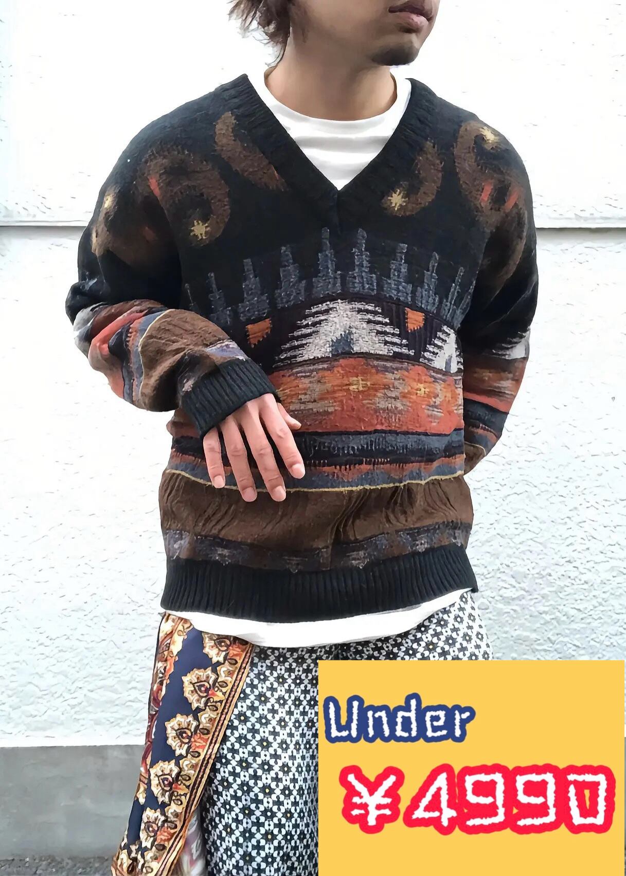 "総柄" V-neck Knit